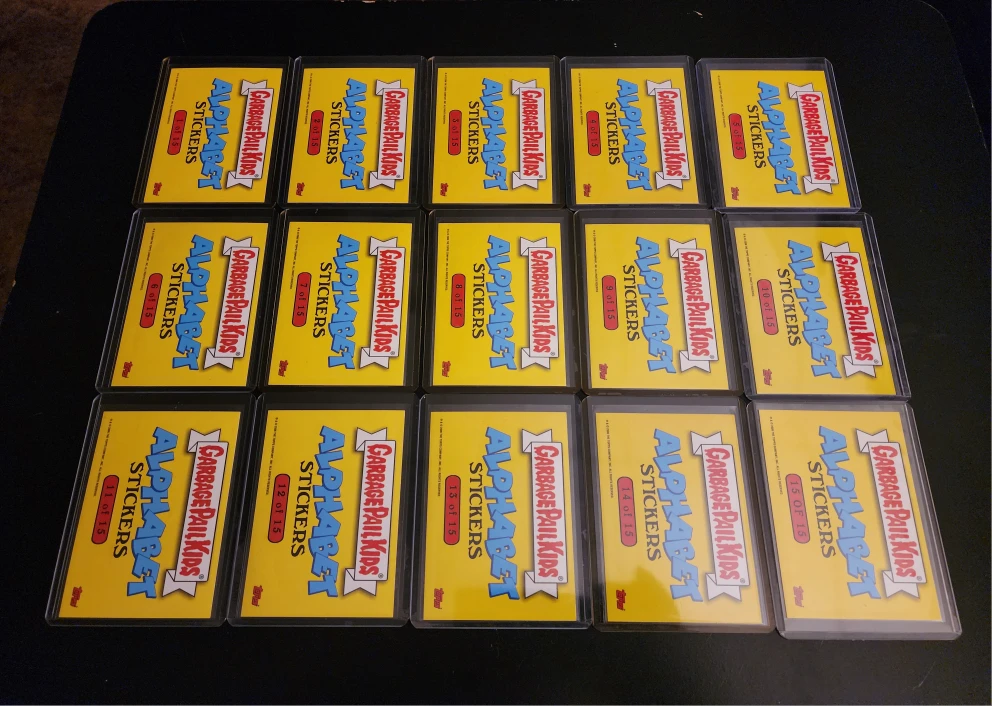 Selling a set of Garbage Pail Kids Alphabet Stickers! These stickers feature the classic Garbage Pail Kids characters in the form of alphabet letters. A fun and nostalgic collectible!