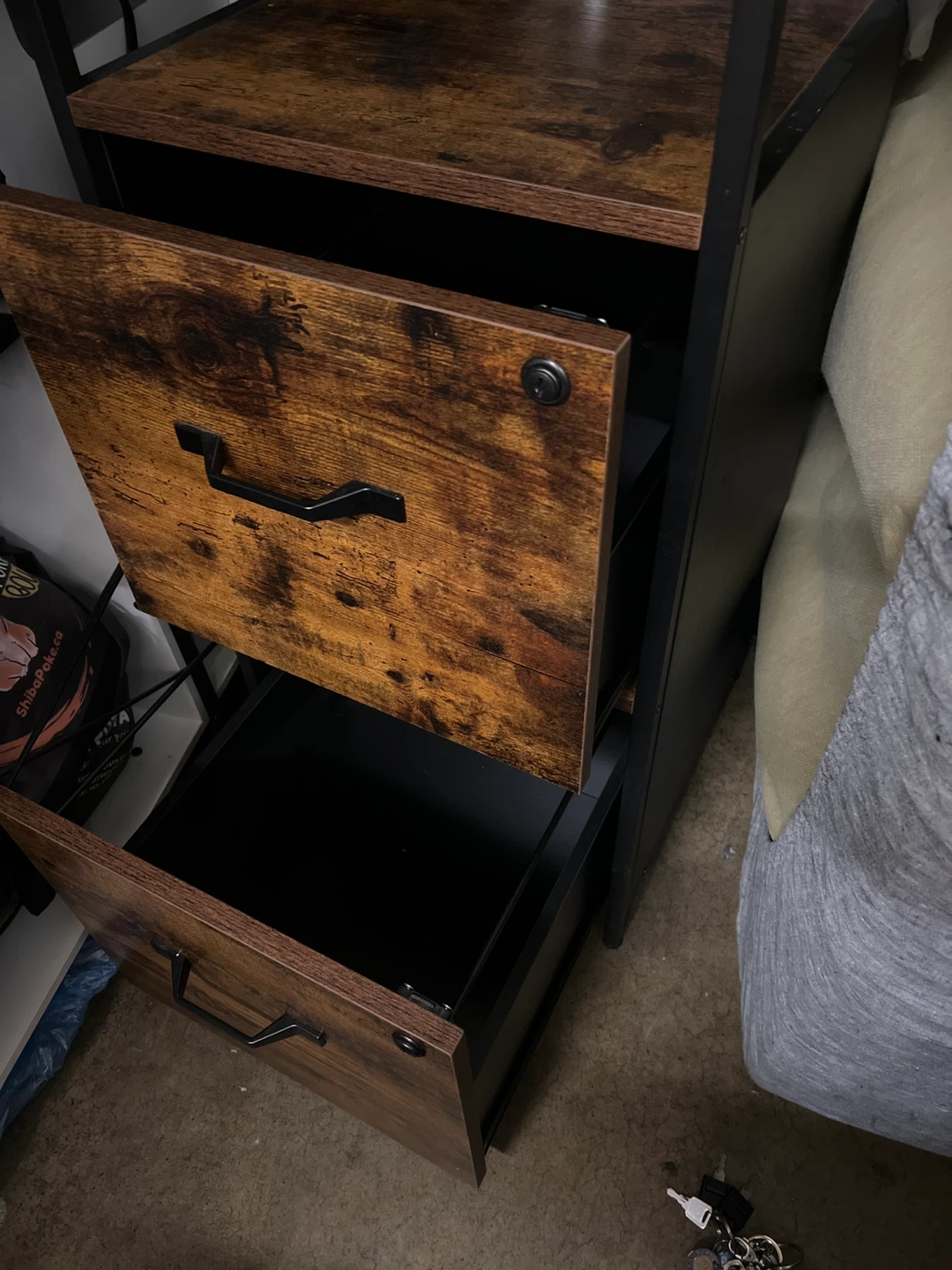 Looking to sell this New file cabinet! It's a rustic brown colour and in great shape. Perfect for adding some storage to your home office or workspace. Comes with keys!