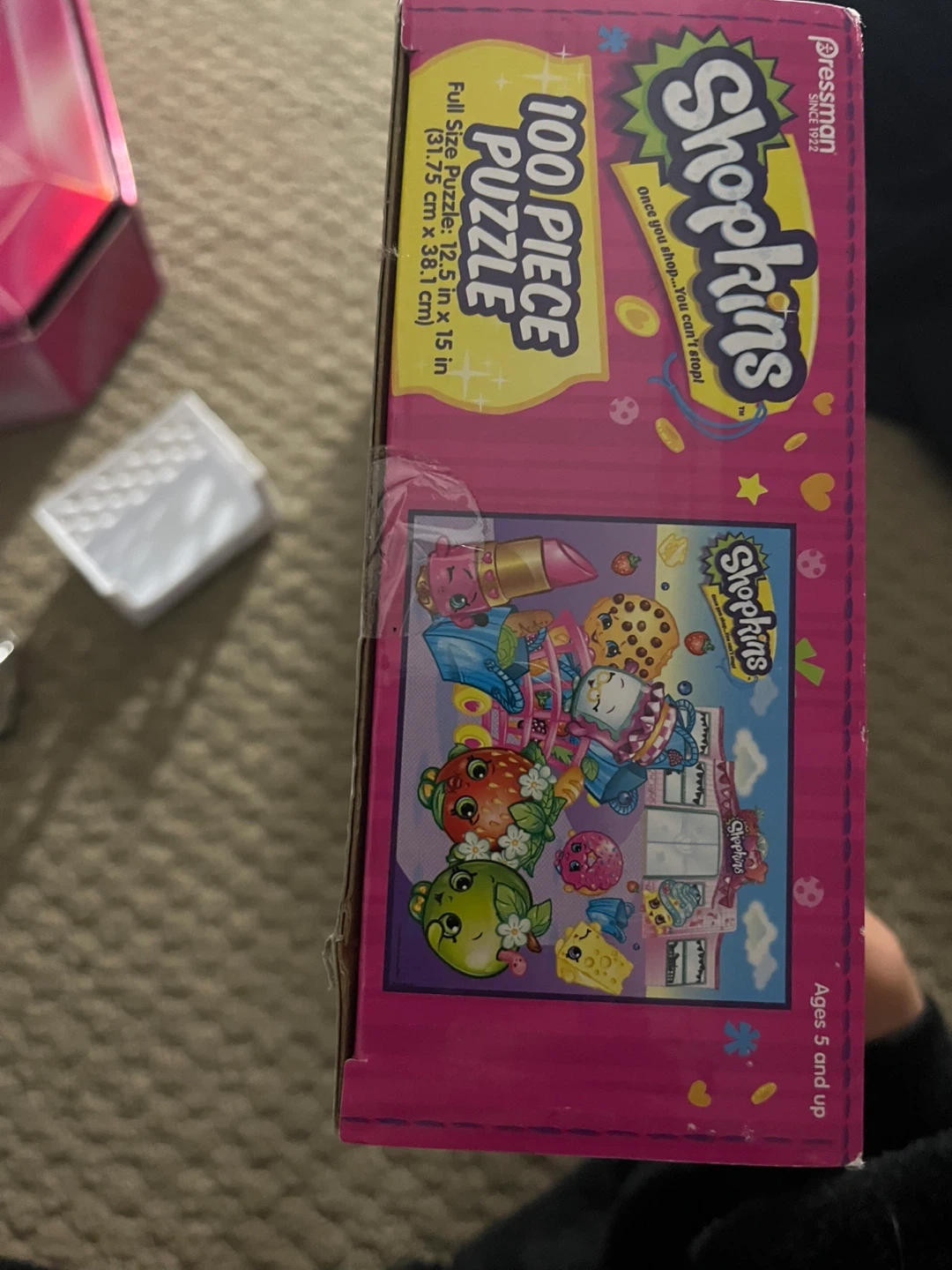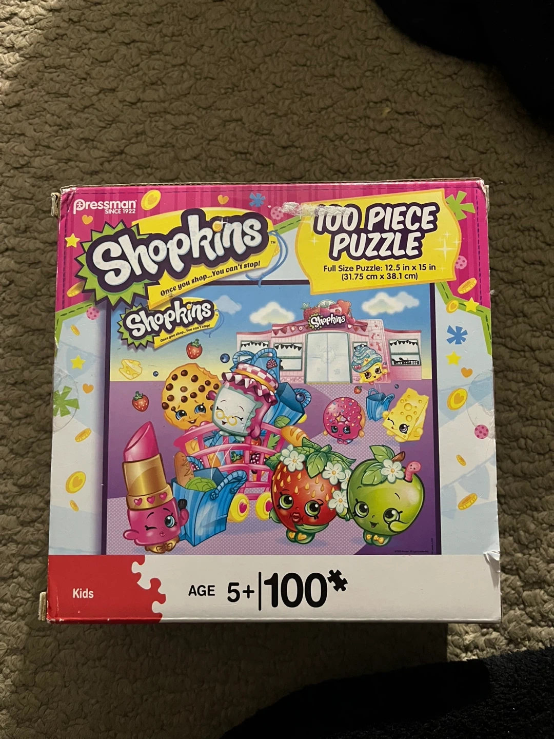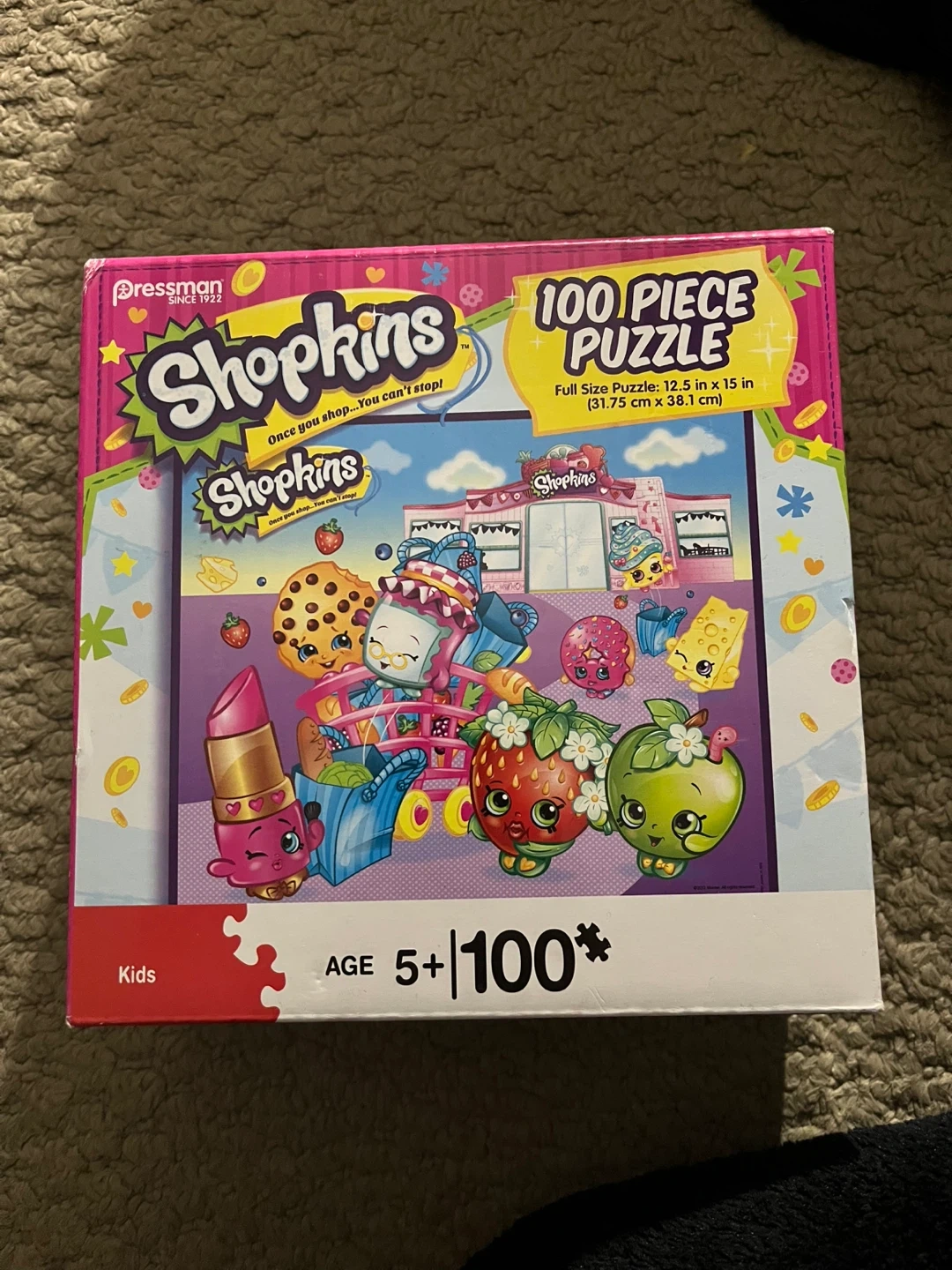 Selling a Shopkins 100-piece puzzle, itโs brand new and undamaged. The full size of the puzzle is 12.5 x 15 inches (31.75 cm x 38.1 cm). Great for a Christmas gift or for fun! Comes from a smoke free and pet free home
