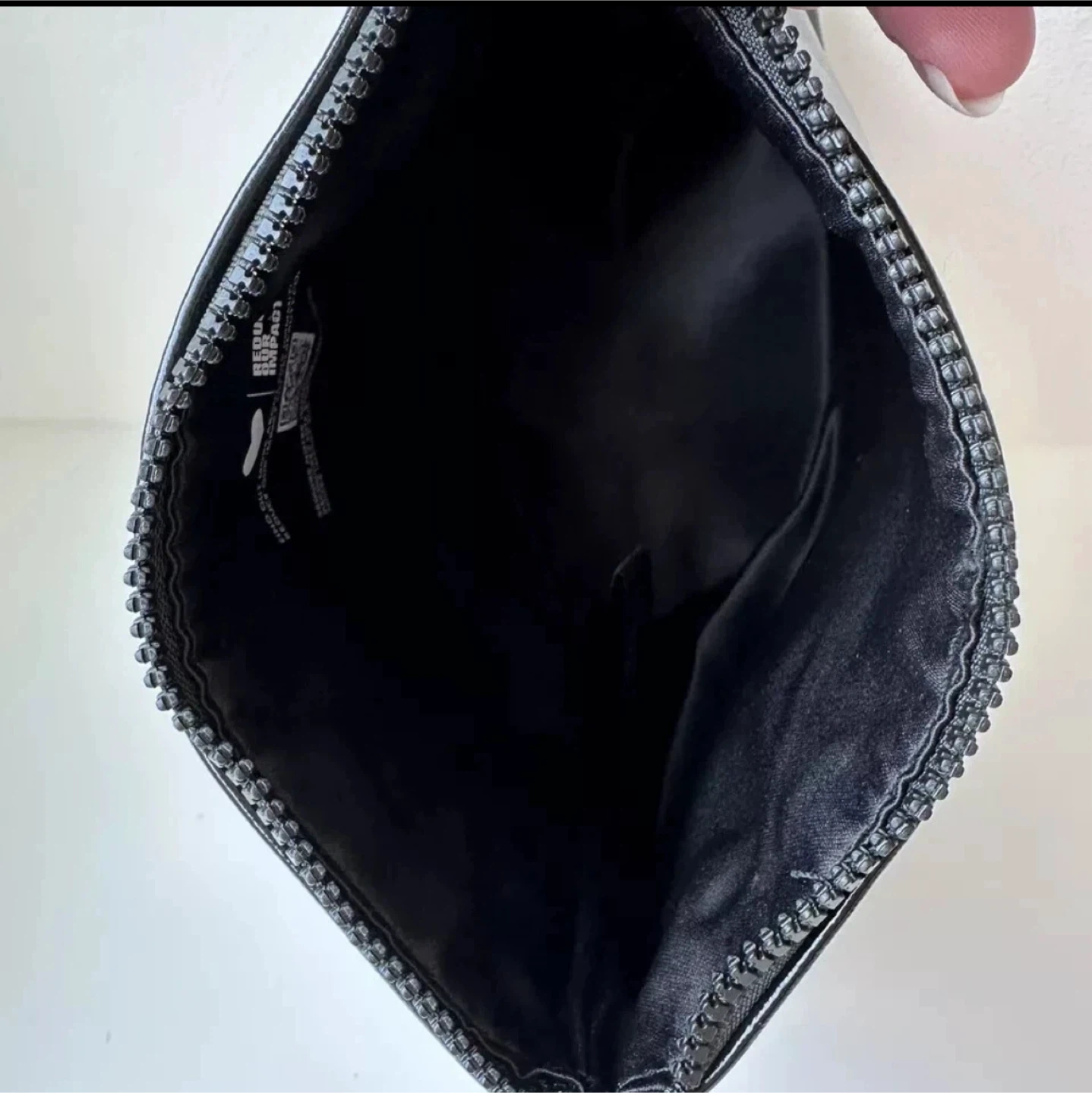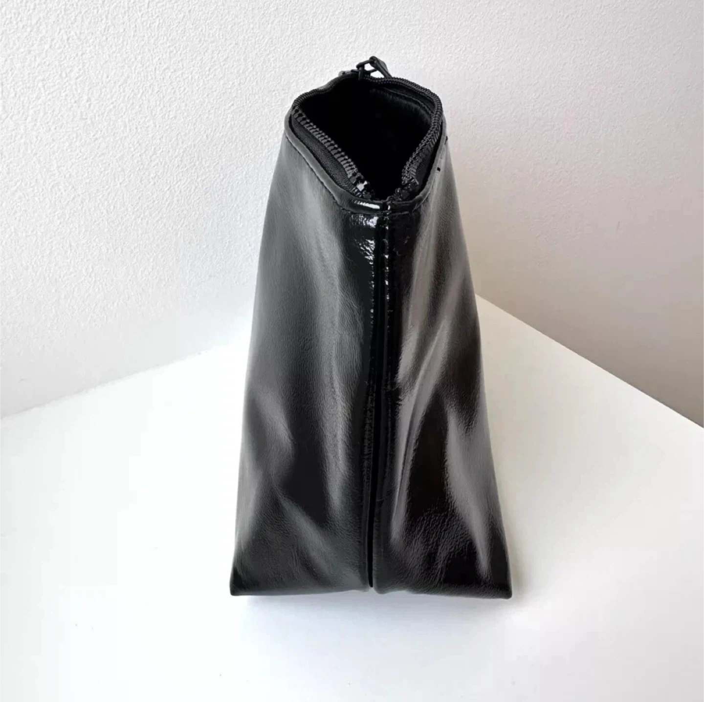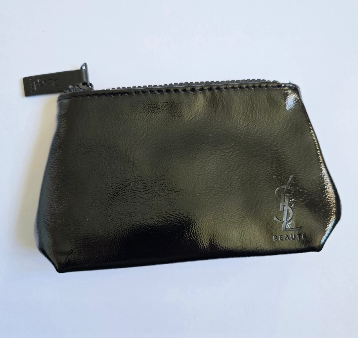 This YSL Beaute pouch is perfect for storing your makeup or other small essentials. It has a sleek black patent finish and the iconic YSL logo.