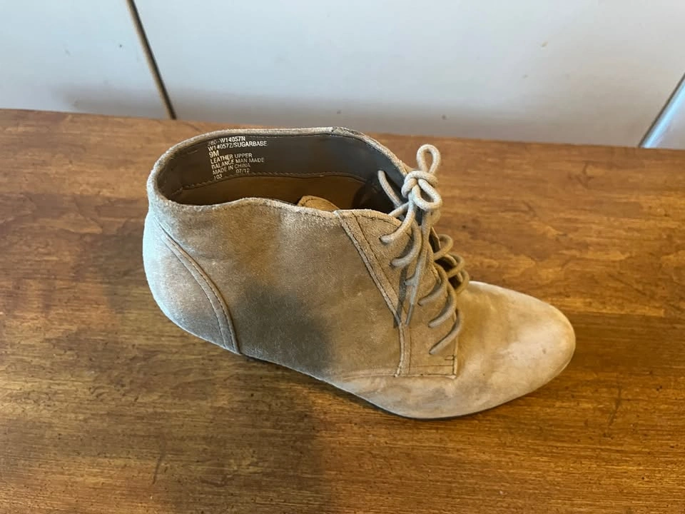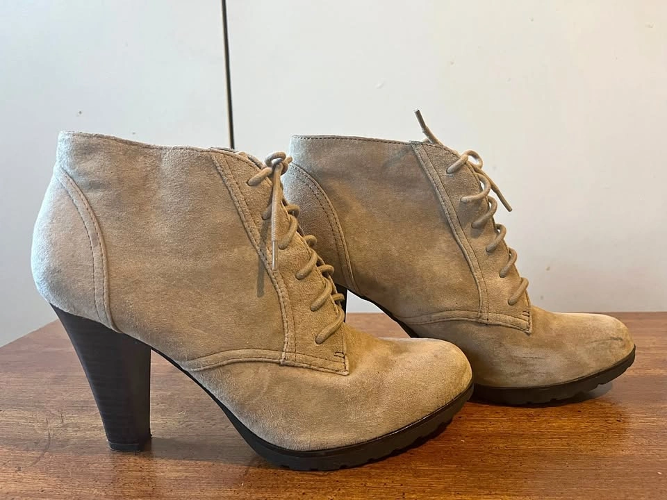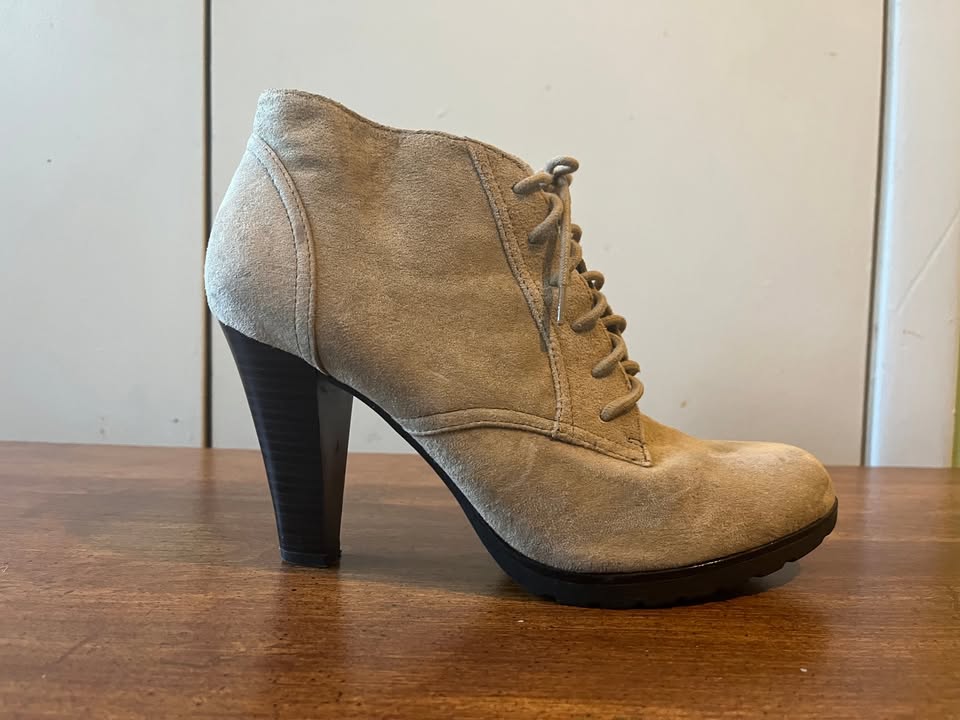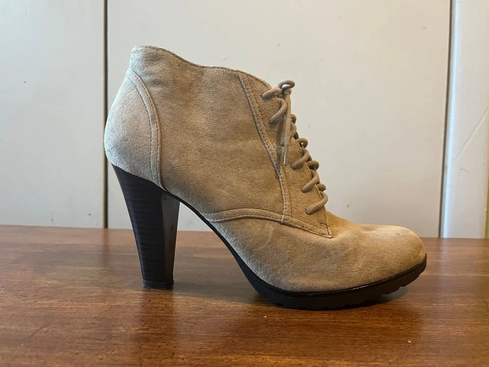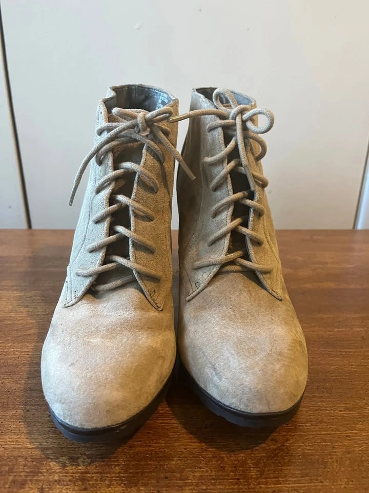 White Mountain Beige Suede Leather Lace Up Ankle Boots