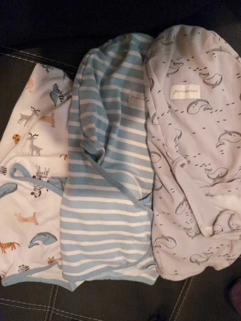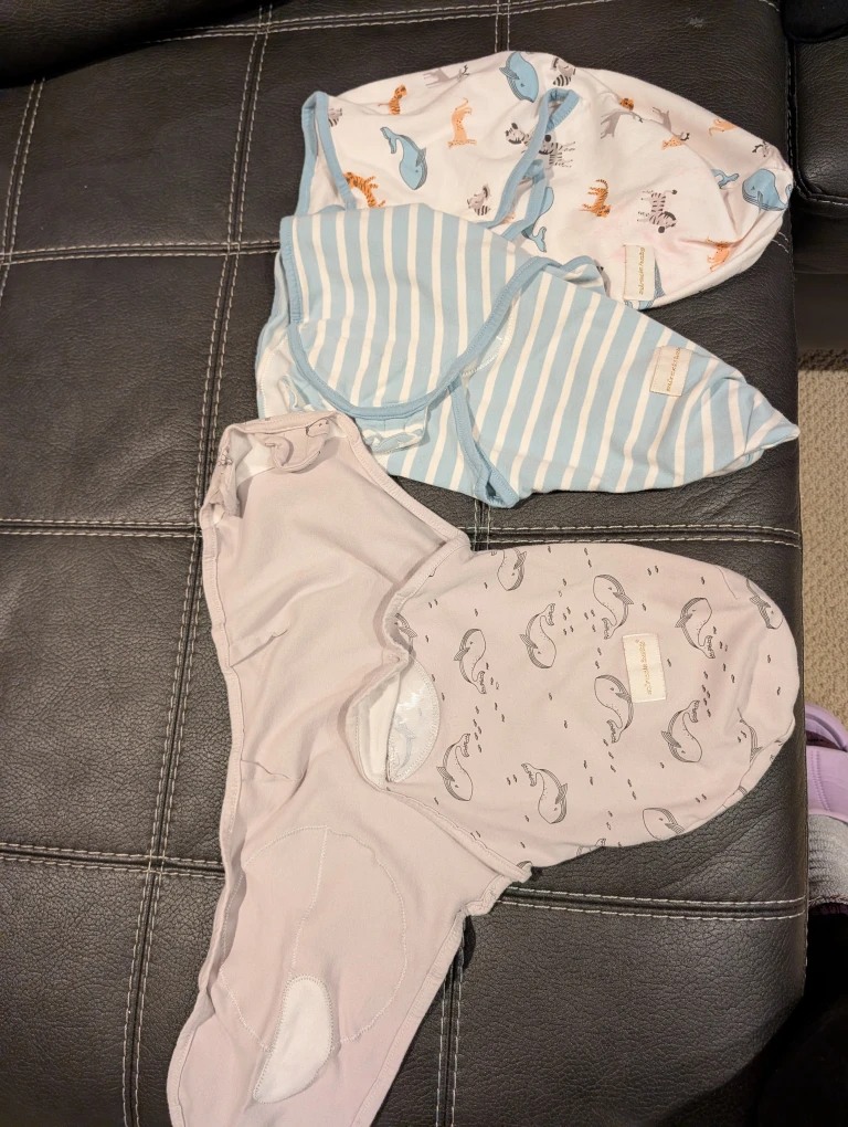 Selling a set of three Swaddle Me pods in newborn size. They feature cute animal and stripe patterns. Perfect for keeping your little one snug and secure! I never use them.