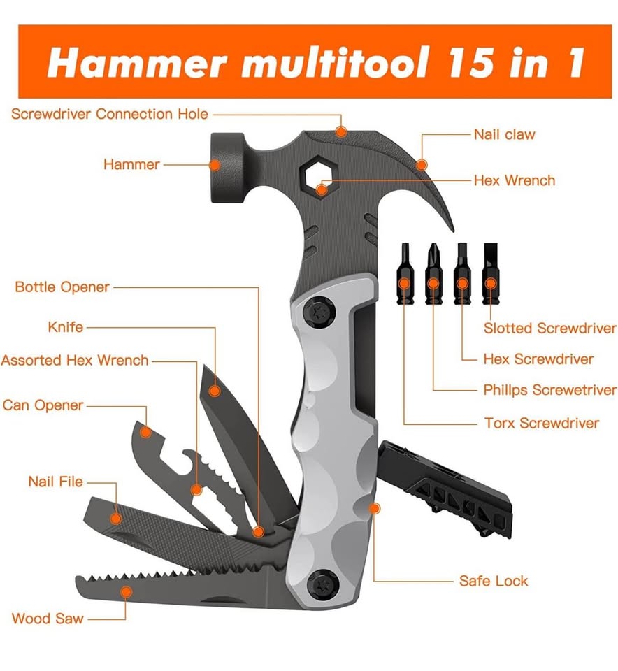 Gifts for dad from daugther son . Multitool Hammer Camping Accessories Gear Tools .car accessories for men, camping multitool multi-hammer,gadgets for men him, useful birthday gifts for him/husband/boyfriend Valentines gift