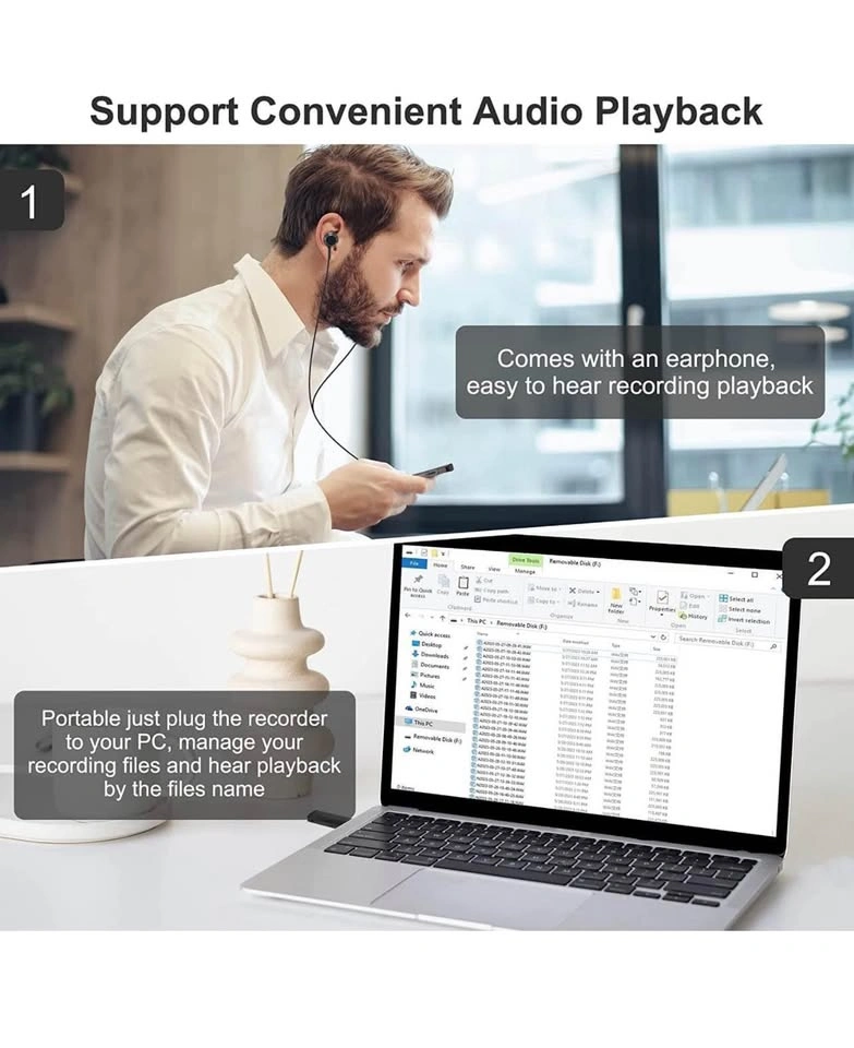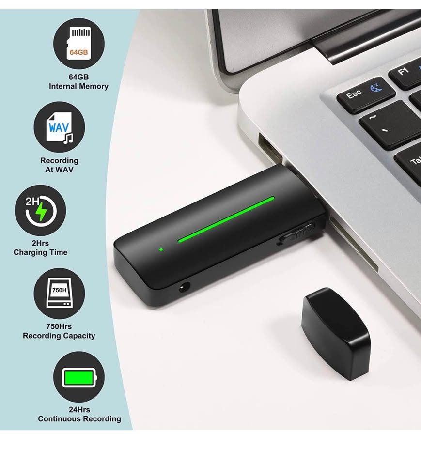 64GB Voice Recorder with Playback: Digital Audio Recorder with Voice Activated, Small USB Dictaphone Recording Device for Lecture Interview Meeting Class