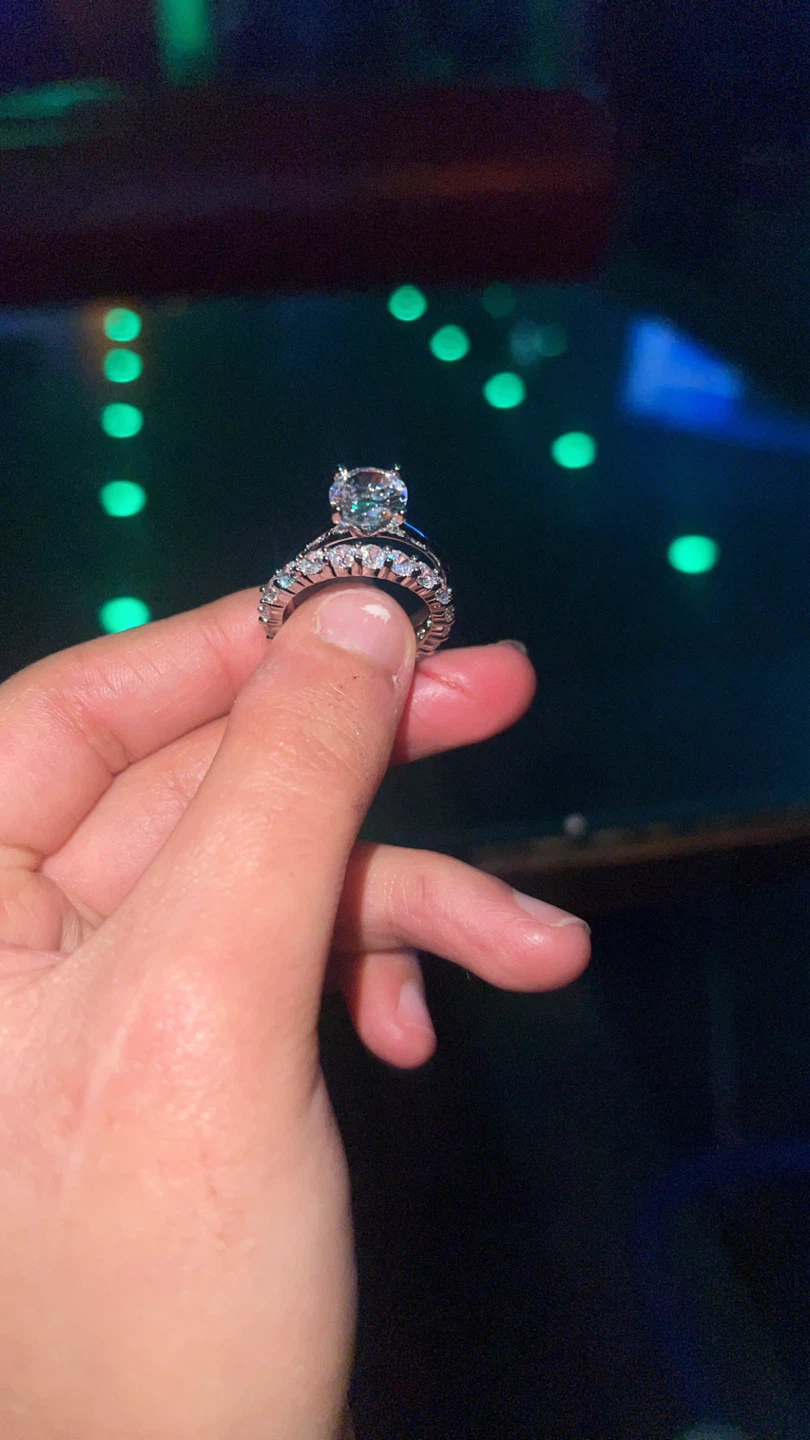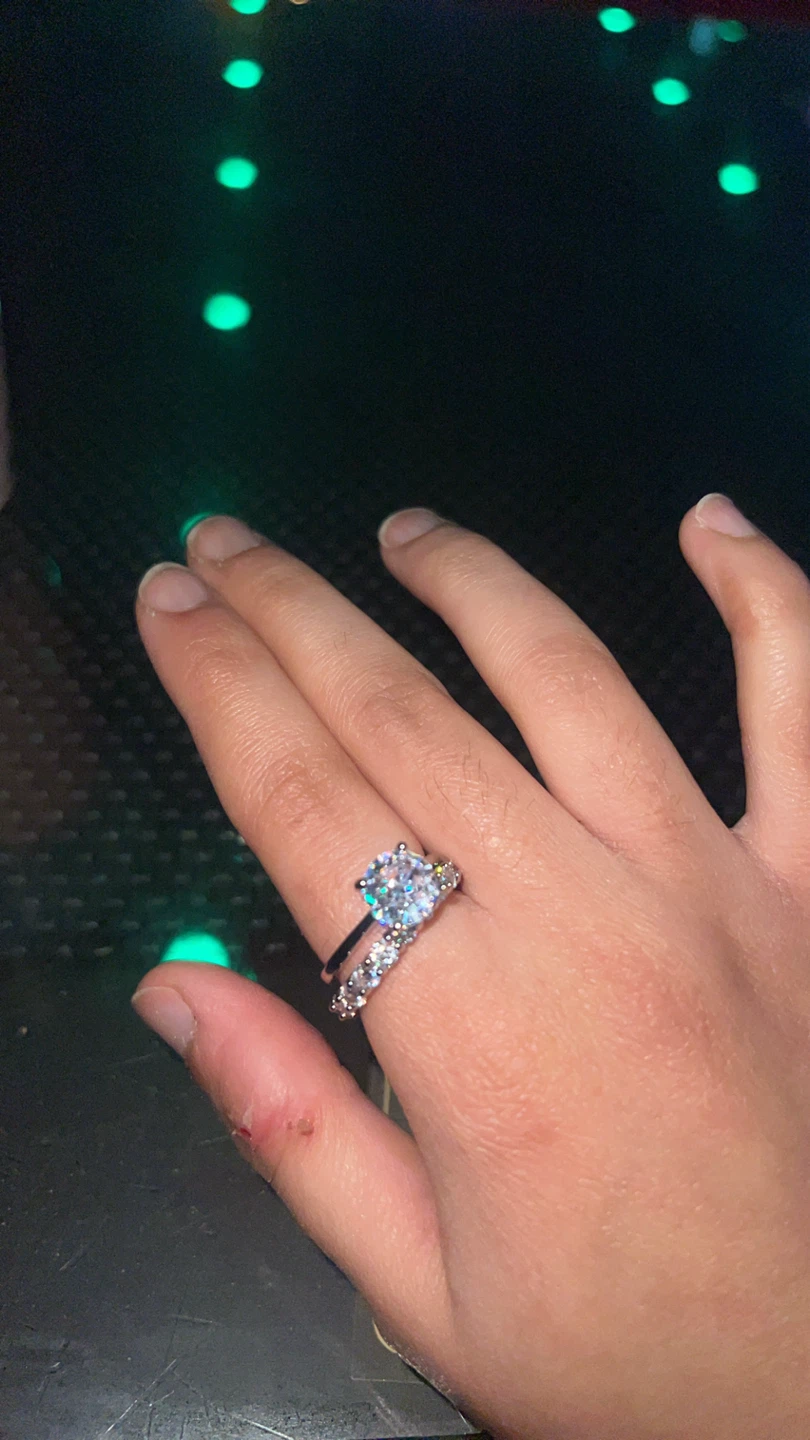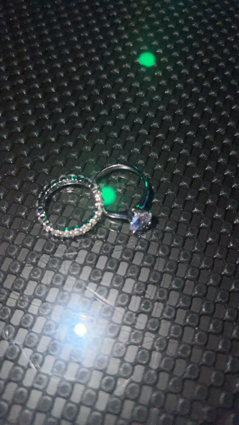 Selling this stunning two-piece ring set — includes a round-cut solitaire engagement-style ring and a full eternity band.
