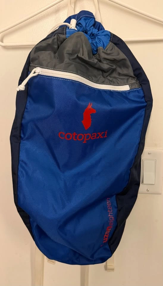 62The 18L Cotopaxi Luzon Backpack is your easy-going and spontaneous adventure companion. Featuring a hardy yet lightweight ripstop nylon shell and ultralight, mesh shoulder straps, the pack is durable and extra comfy to carry. Thanks to its roomy main compartment, it can fit just about anything. Features: Large main compartment Top drawstring closure Front zippered pocket Ultralight mesh shoulder straps Internal hydration sleeve Specs: 100% deadstock nylon & polyester 18L (609oz) 20" x 11.25" x 5.1" Weighs .66lbs Available for pick up in Midtown West in Manhattan.