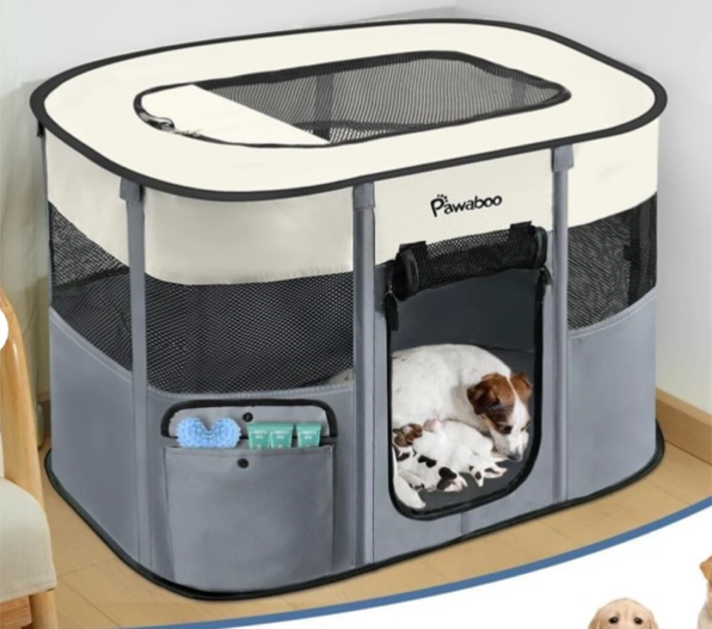 Selling a Pawaboo dog playpen! It's designed to offer excellent comfort and security for your furry friend, providing a safe and breathable space. The play tent has a rectangular shape and a double zipper door design to save space when not in use.