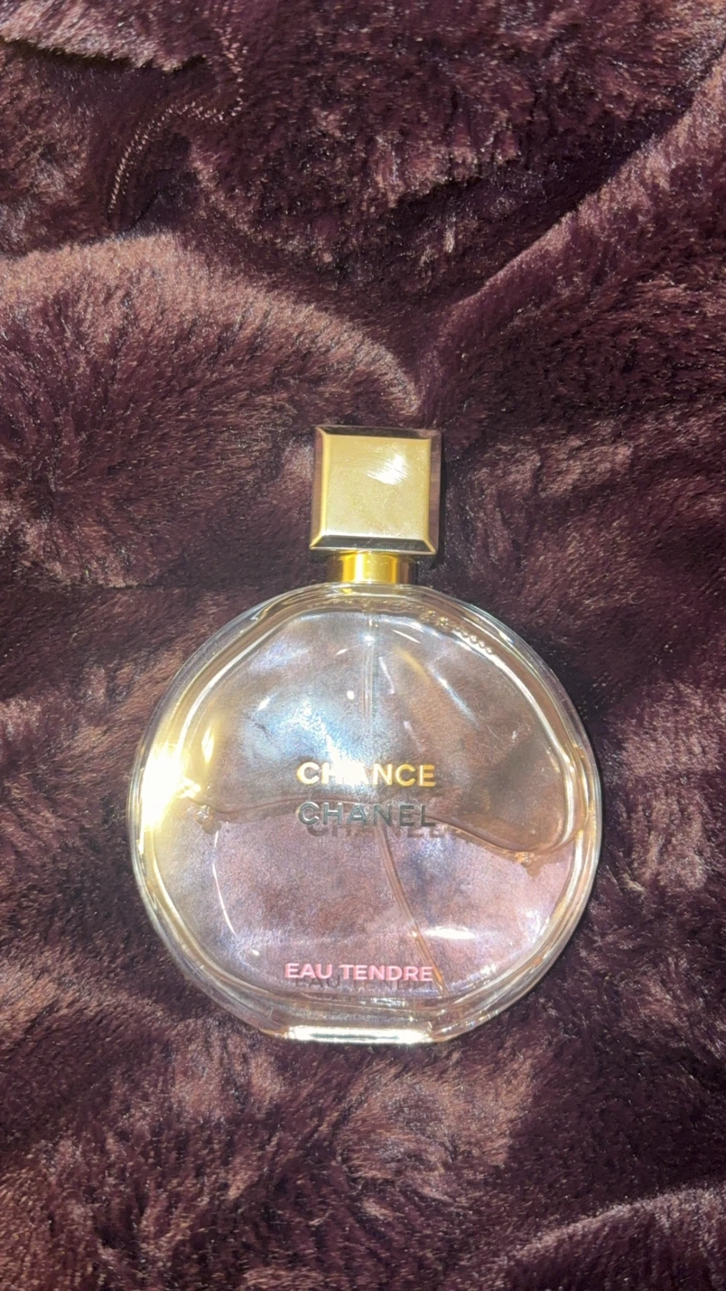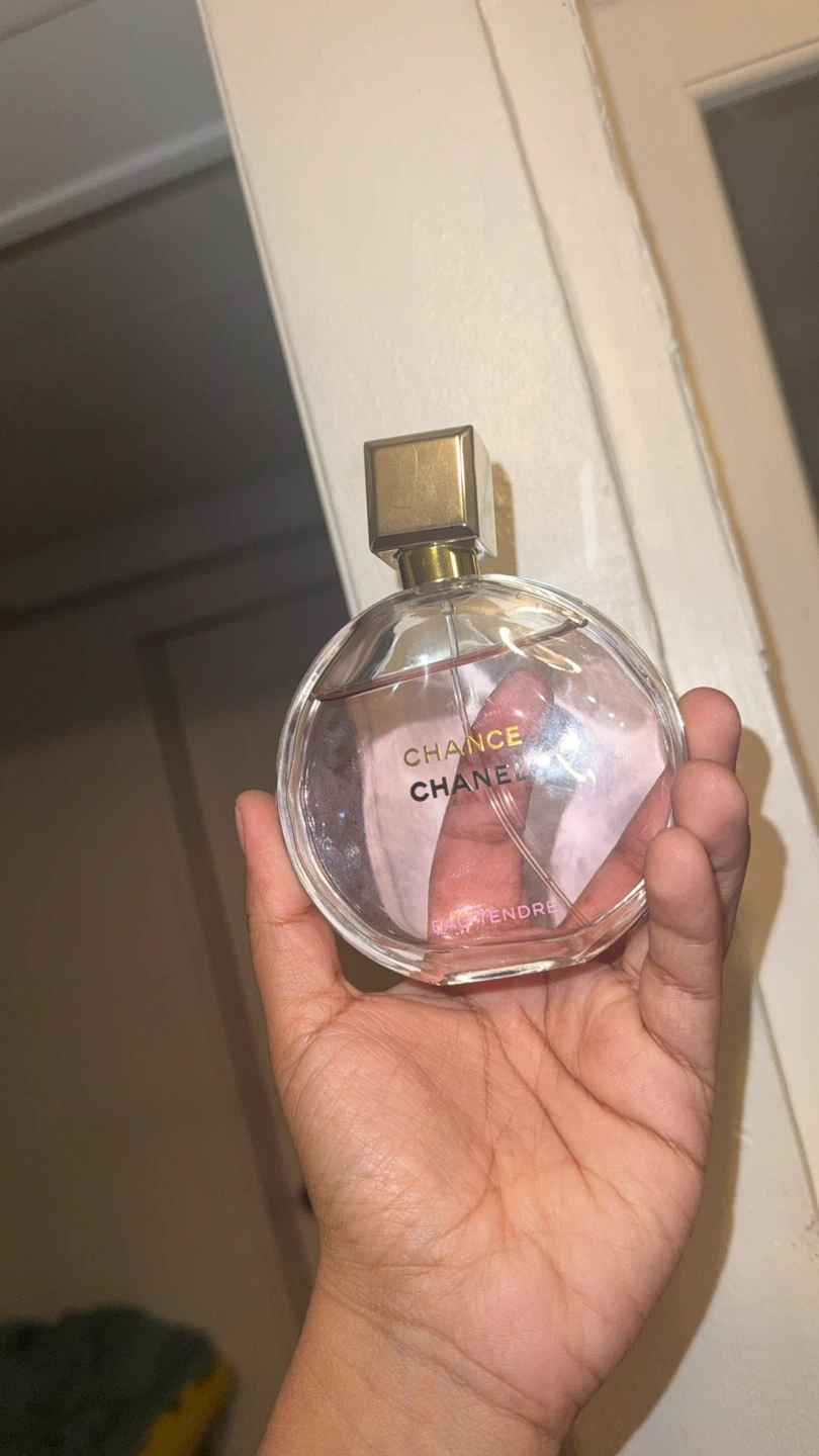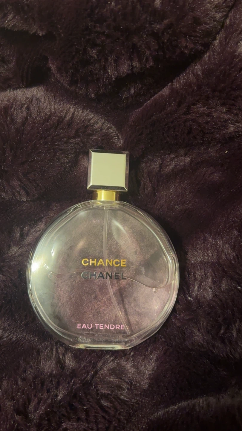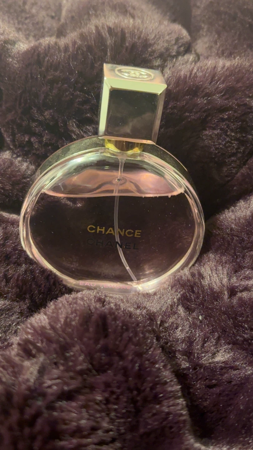 Selling a bottle of Chanel Chance Eau Tendre perfume. It's in great condition and ready to find a new home! The bottle is a beautiful round shape with a square cap, perfect for adding a touch of elegance to your collection