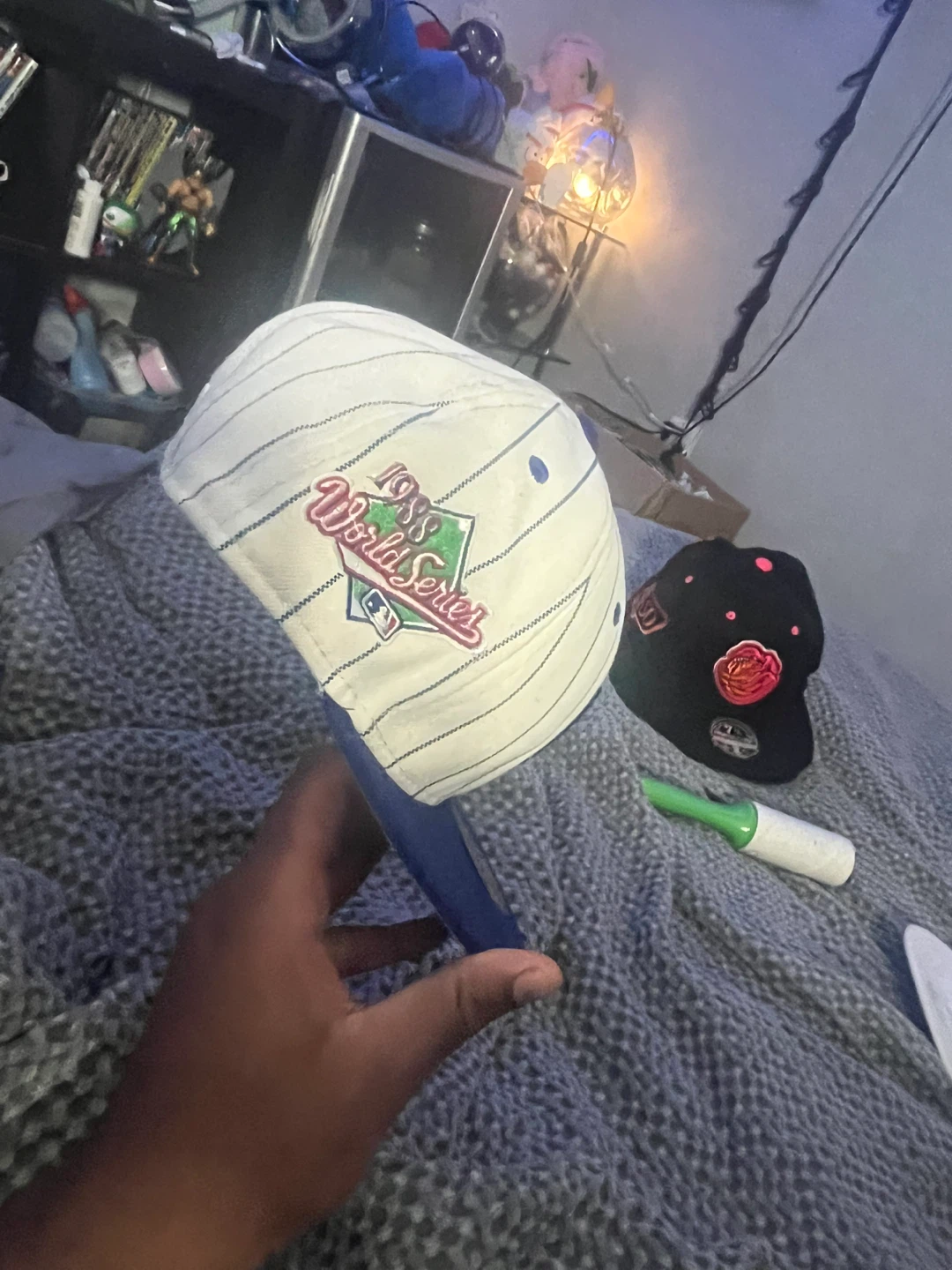Selling a New Era LA Dodgers 59FIFTY fitted hat. It features a white and blue colour scheme with the LA logo on the front. The hat also commemorates the 1988 World Series. A great addition to any baseball fan's collection!