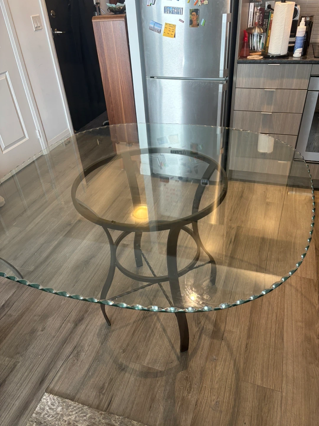 The glass has a wavy beveled perimeter that looks luxurious and catches light beautifully.