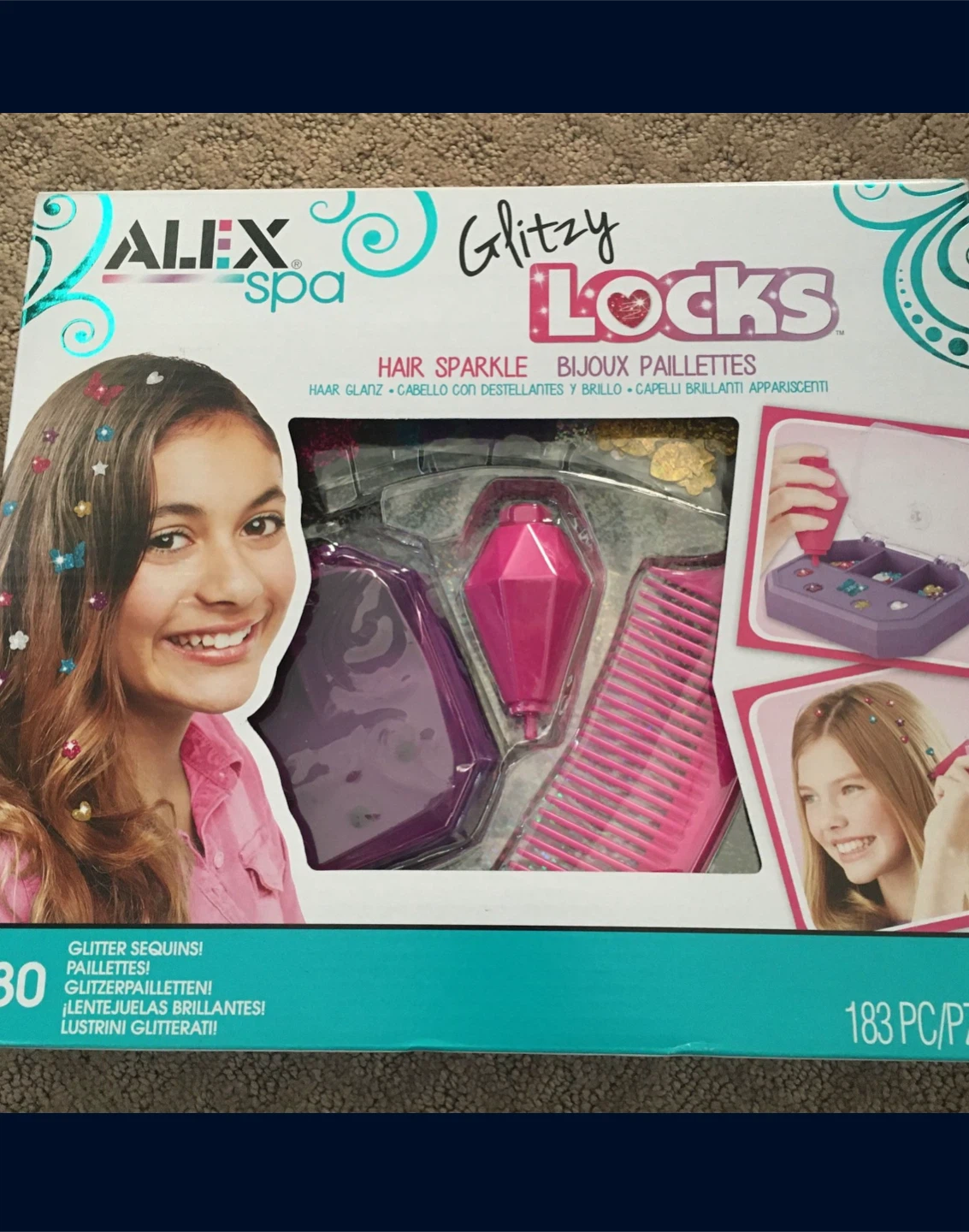 Selling a brand new ALEX Spa Glitzy Locks Hair Sparkle kit! It includes glitter sequins and everything you need to add some sparkle to your hair. Contains 183 pieces