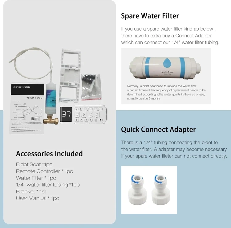 [ Multiple Cleaning Modes ] : This smart bidet seat with curved self-cleaning Spray Nozzle offers front wash, rear wash, mobile wash. The water sprayer pressure, position, and temperature of its instant hot water can be adjusted to meet the different needs of your family.