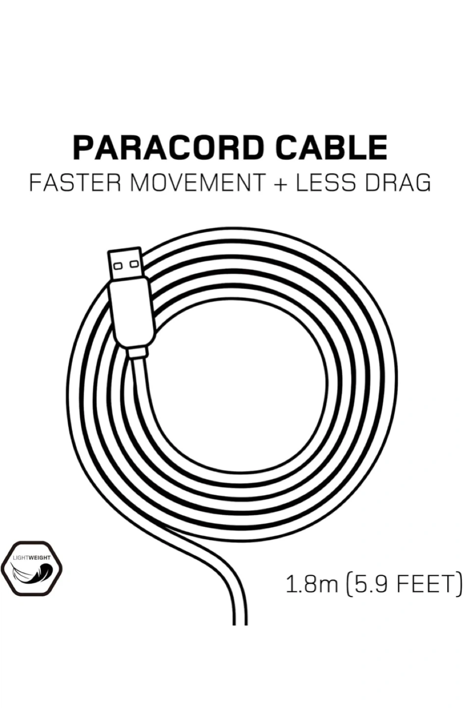 - Paracord cable for faster movement and less drag (1.8m/5.9 feet)