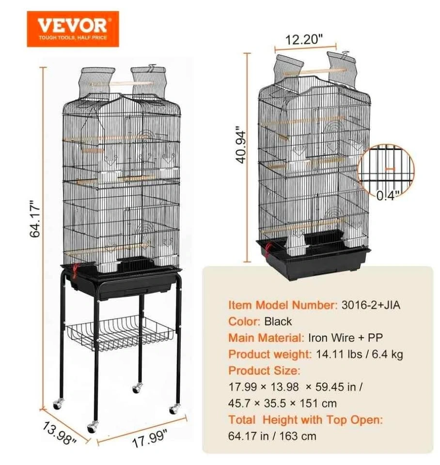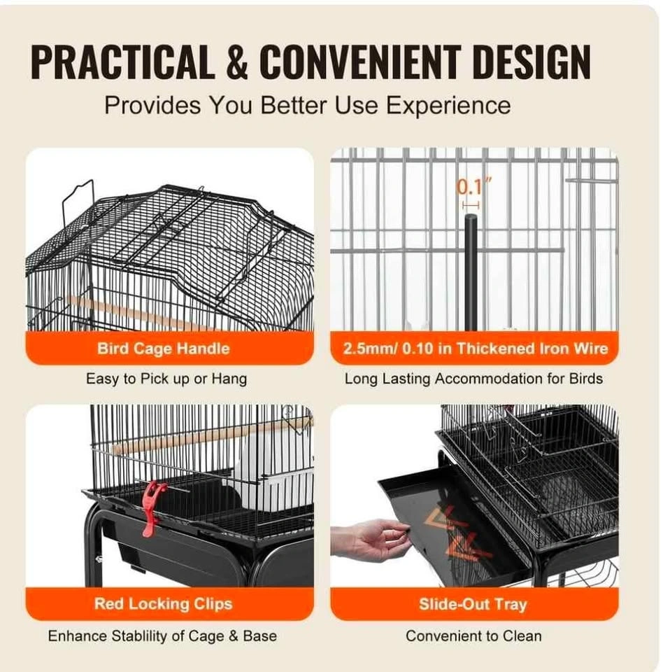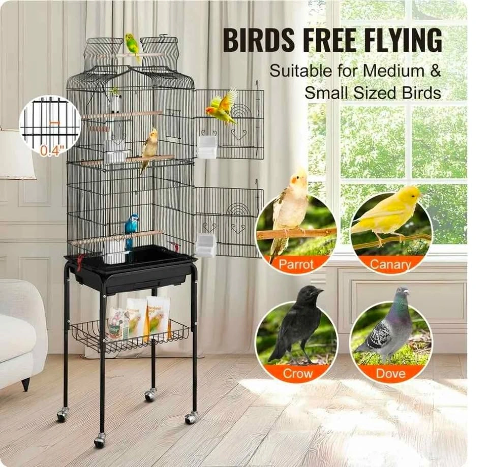 Vevor Open Top Rolling Bird Cage