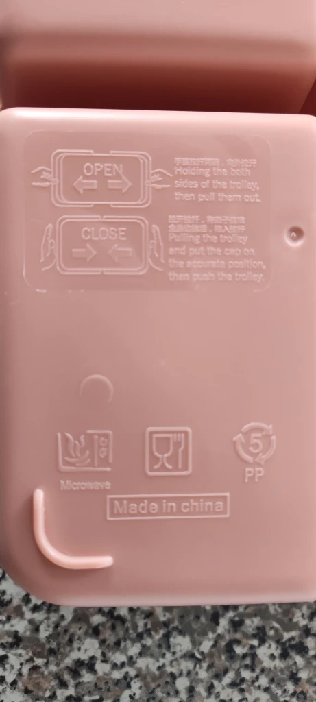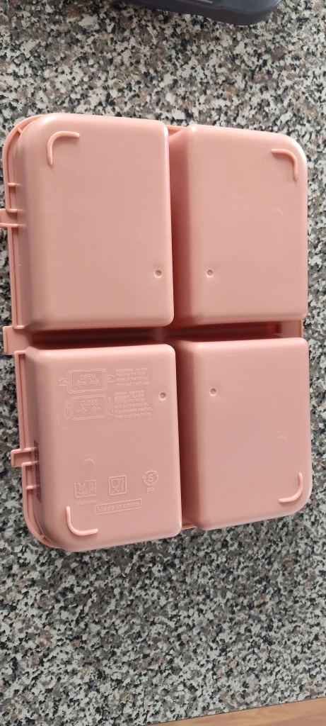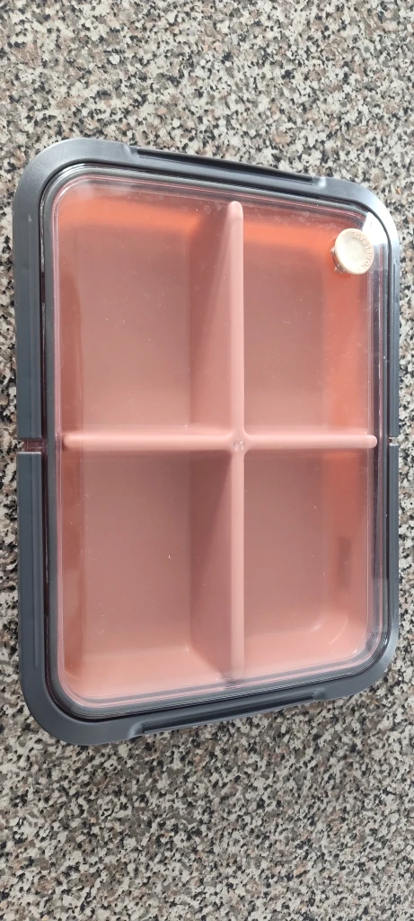 Selling a cute pink bento box! It has four compartments, perfect for packing a variety of snacks or a balanced lunch. It's microwave-safe, so you can easily heat up your food. Can be washed in dishwashers.