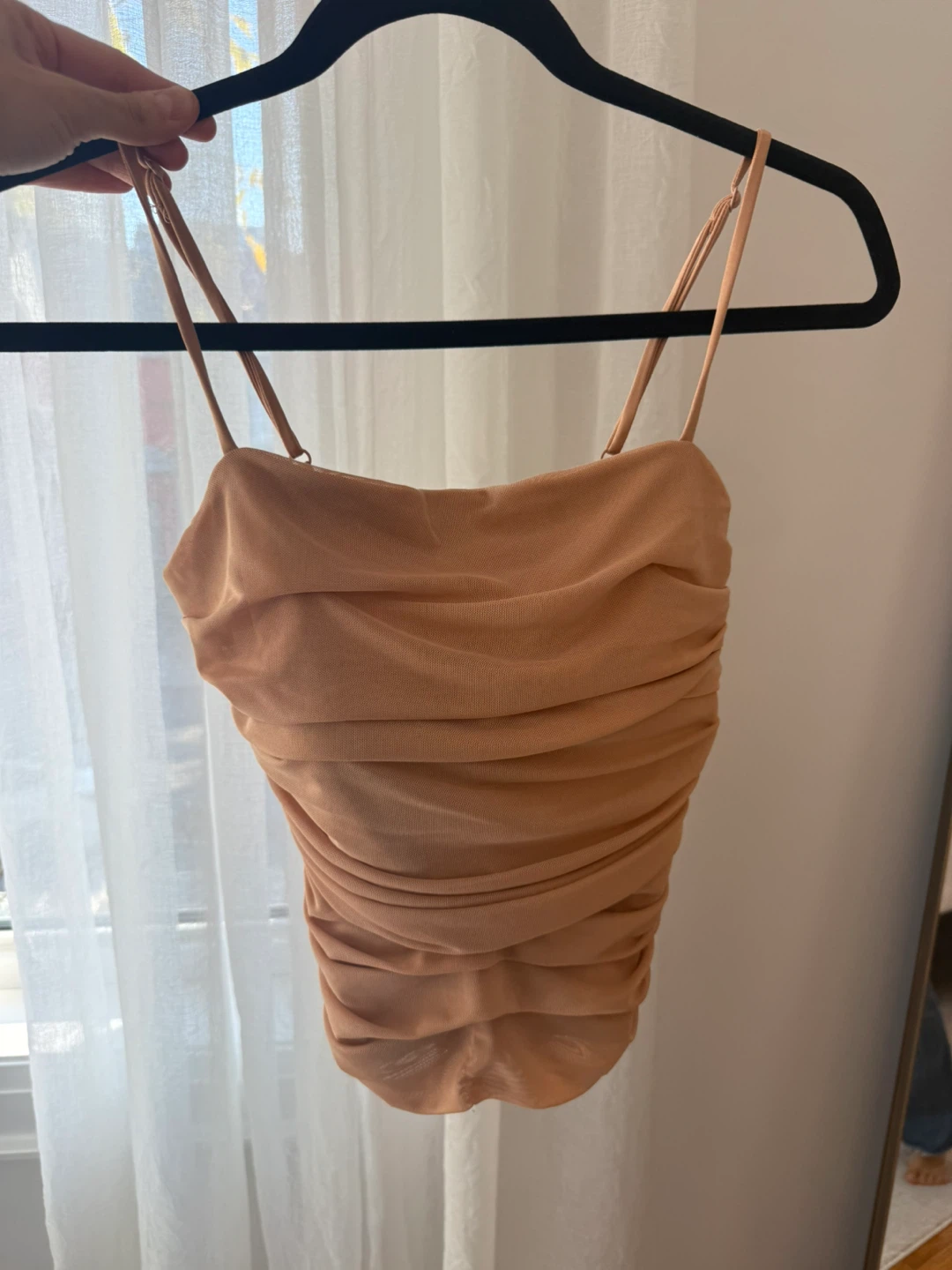 Selling a Windsor ruched cami top in a nude colour. It's in great condition and cute under blazers or as is!