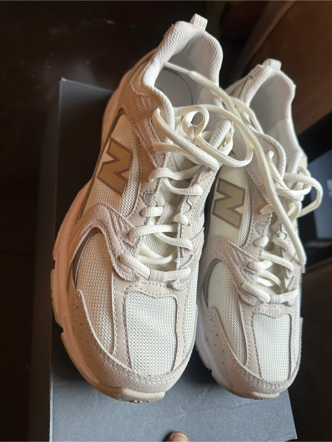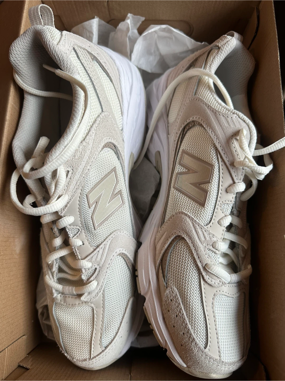 Selling a pair of New Balance 530 sneakers in a lovely beige colour! They're in new condition and come with the original box. These shoes are super stylish and comfortable, perfect for everyday wear!