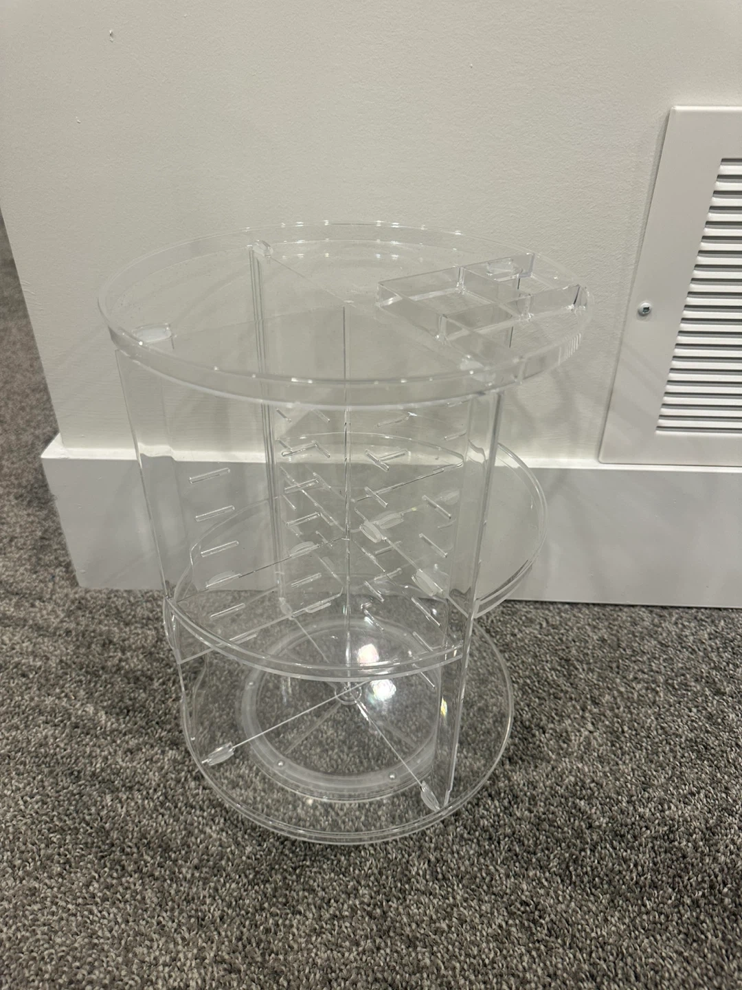 Selling a clear rotating makeup organizer! It's in great shape and perfect for keeping all your cosmetics tidy and accessible. The rotating design makes it easy to find what you're looking for. Great for vanities or small spaces!