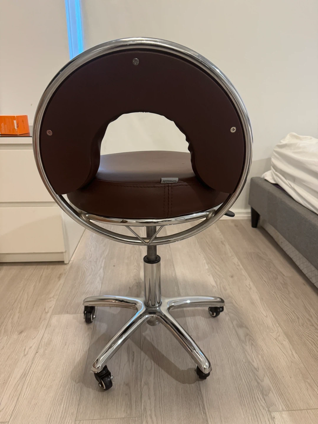 Selling a comfy adjustable rolling stool! It's in great shape and would be perfect for a home office or workspace. The brown colour is a nice neutral tone that fits in anywhere