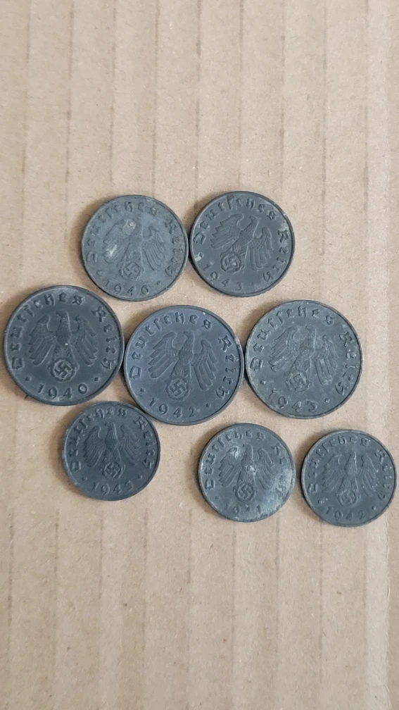 There are 8 Germany World War 2 Coins, good to excellent condition as per scans! See my other listing too. I have a lot of stamps and covers too!