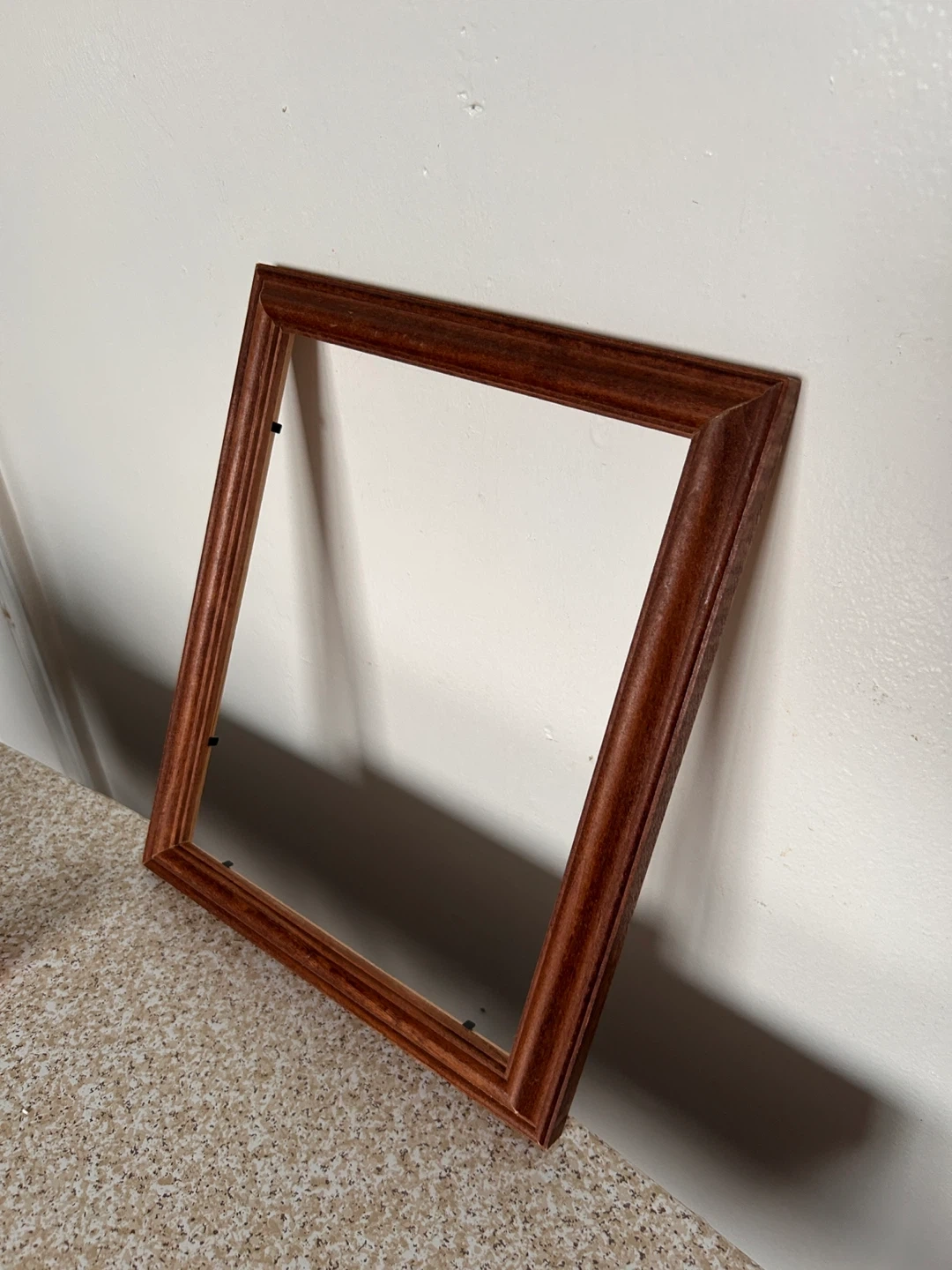 Selling a wooden picture frame! It's a lovely piece to display your favourite memories or artwork. It’s in great condition and ready for a new home