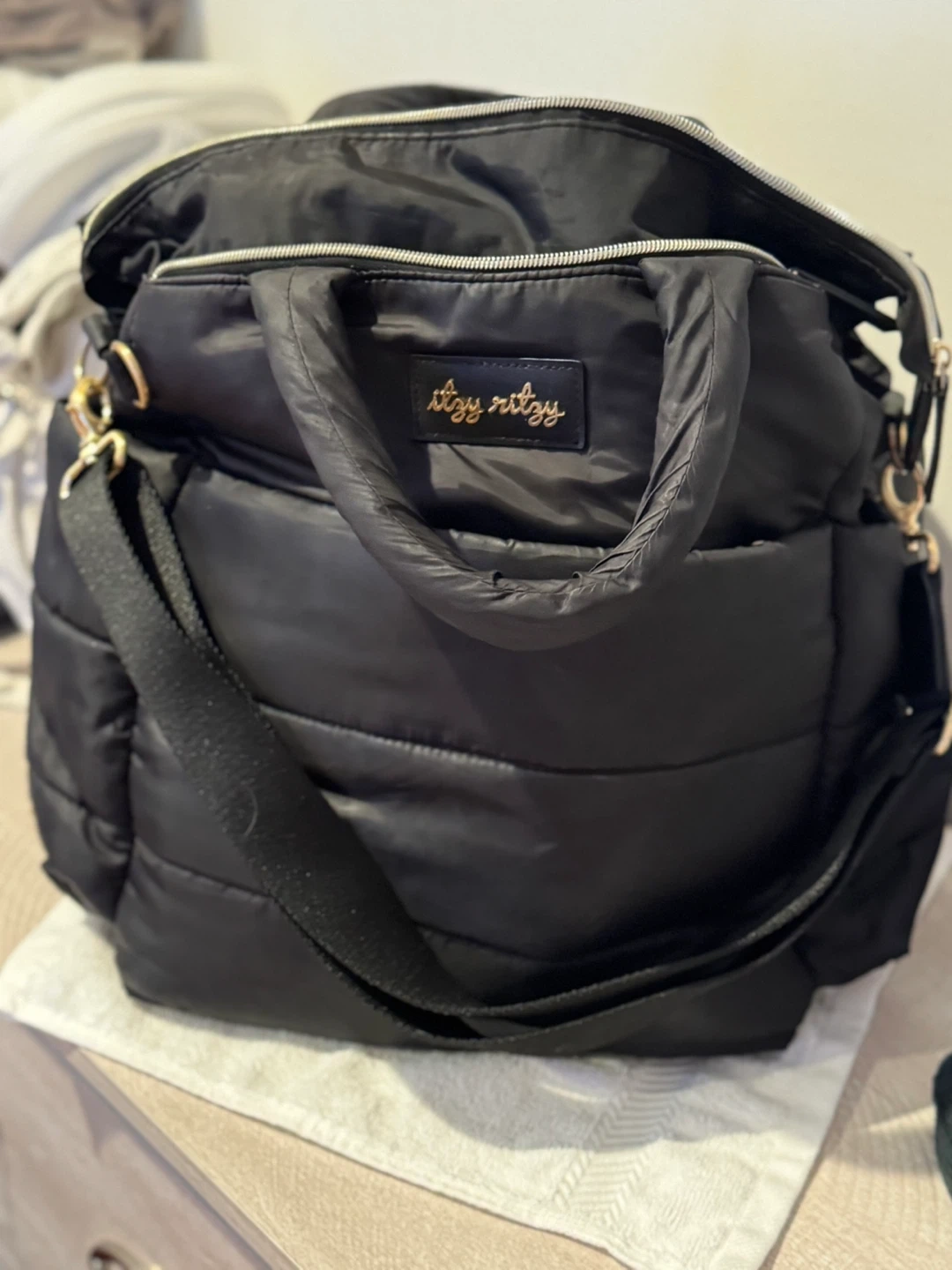 Selling a gently used Itzy Ritzy diaper bag in black! It's in great condition and ready for a new home. This stylish and functional bag is perfect for keeping all your baby essentials organized while on the go