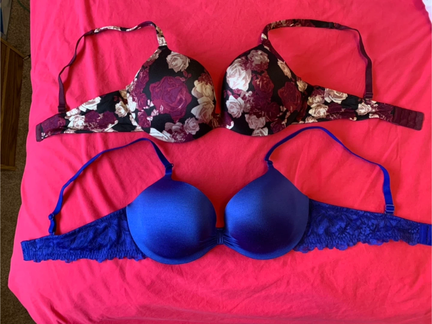 Selling two new La senza push up Bras! One is a floral pattern with roses, 38C and the other is a lovely royal blue colour 38B with lace detailing. $20 each. Cash Only!