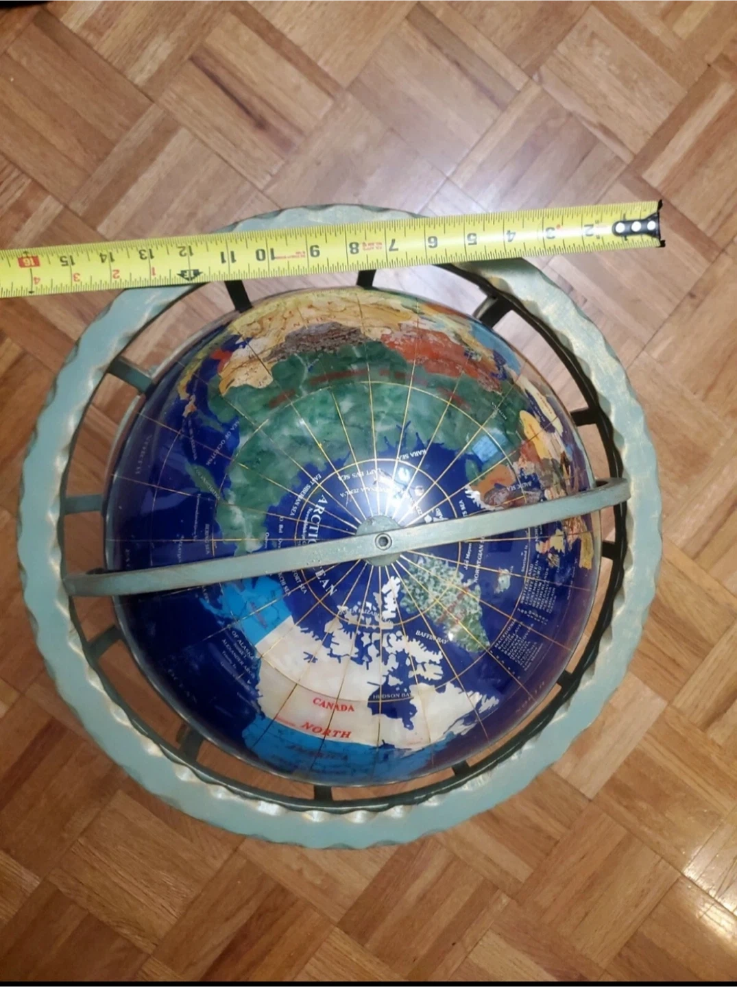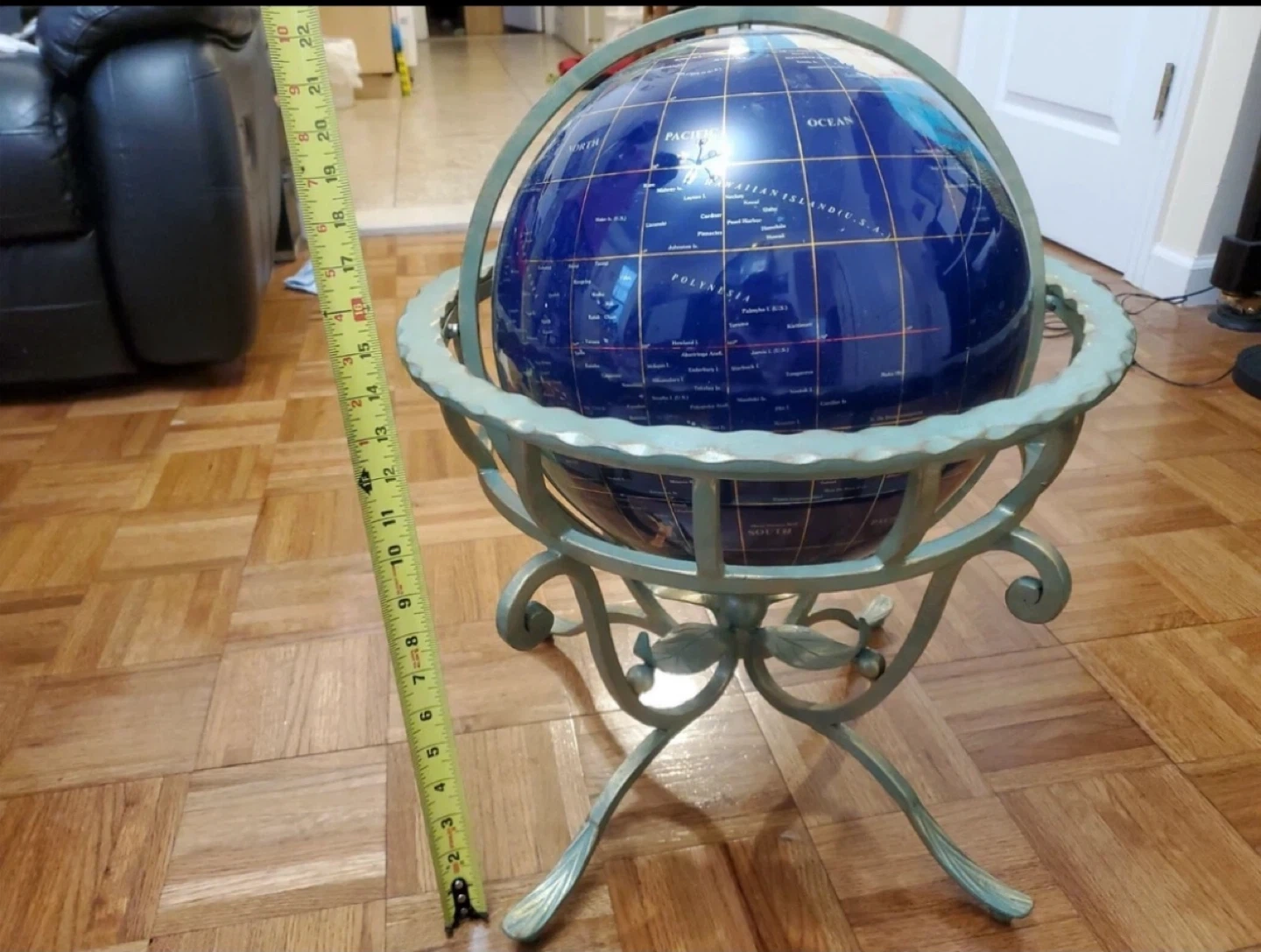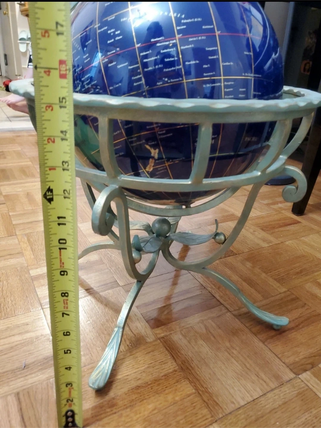 I'm selling a beautiful blue lapis gemstone globe with a decorative cooper stand. It's in great condition and would look amazing in any home or office! The globe itself has a diameter of approximately 16 inches, 22 inches tall. making it a substantial and eye-catching piece. Good for fengshui for your business and home.