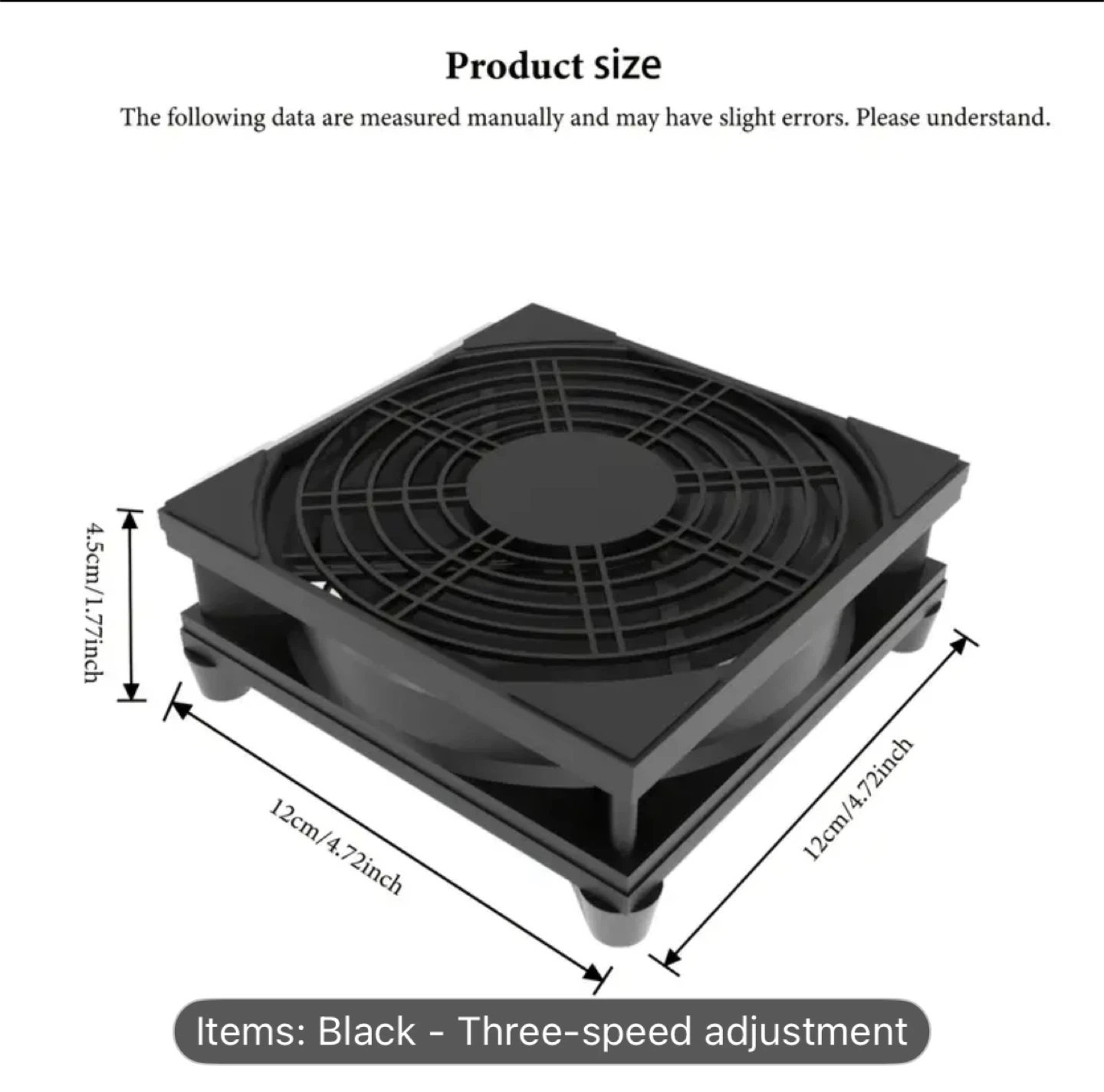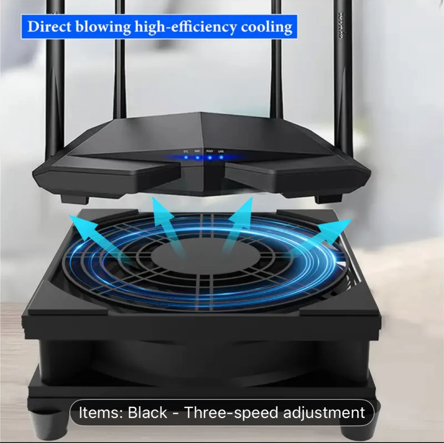 Keep your router cool with this handy cooler! It features direct blowing high-efficiency cooling and has a three-speed adjustment to control the wind force. The dimensions are approximately 12cm x 12cm x 4.5cm. It also comes with a three-speed control switch for easy operation.