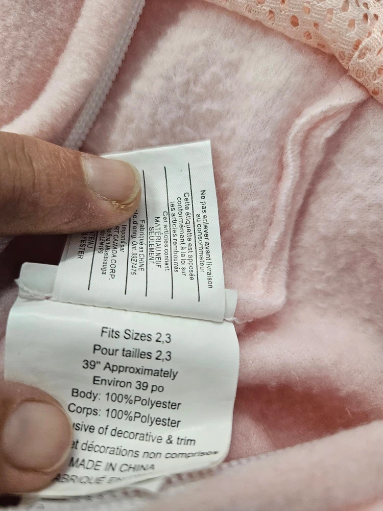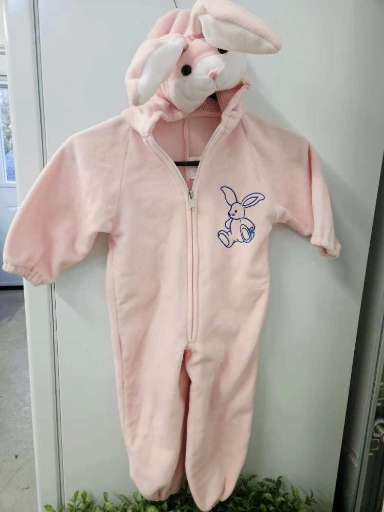 Super cute bunny costume, perfect for dress-up or Halloween! It fits sizes 2 and 3, and is made of 100% polyester. The body is also 100% polyester