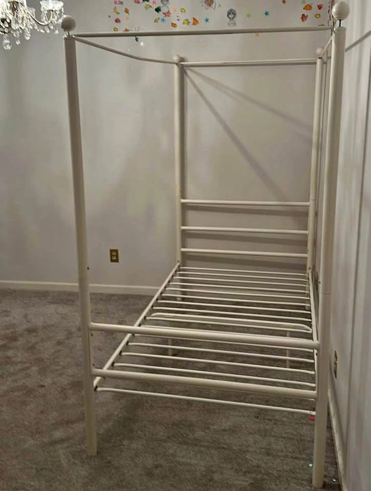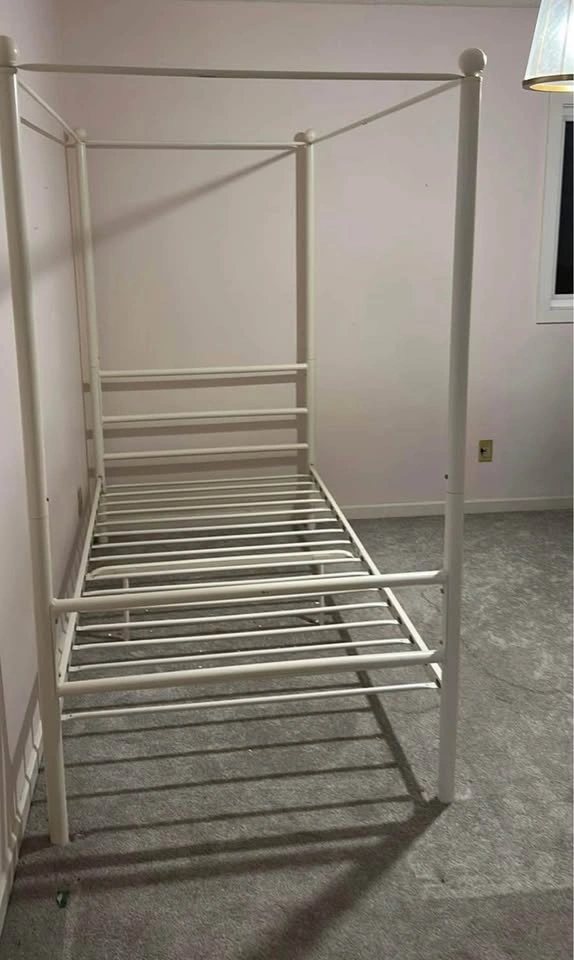 Ikea white metal twin canopy bedframe. Can deliver within the Calgary area.