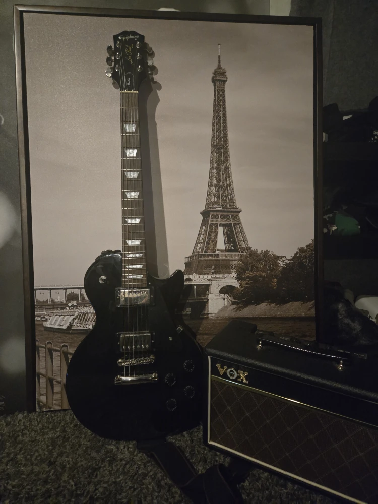Selling an Epiphone Les Paul Studio electric guitar in black with amplifier. It's in great condition and ready for a new home. Perfect for beginners or experienced players!