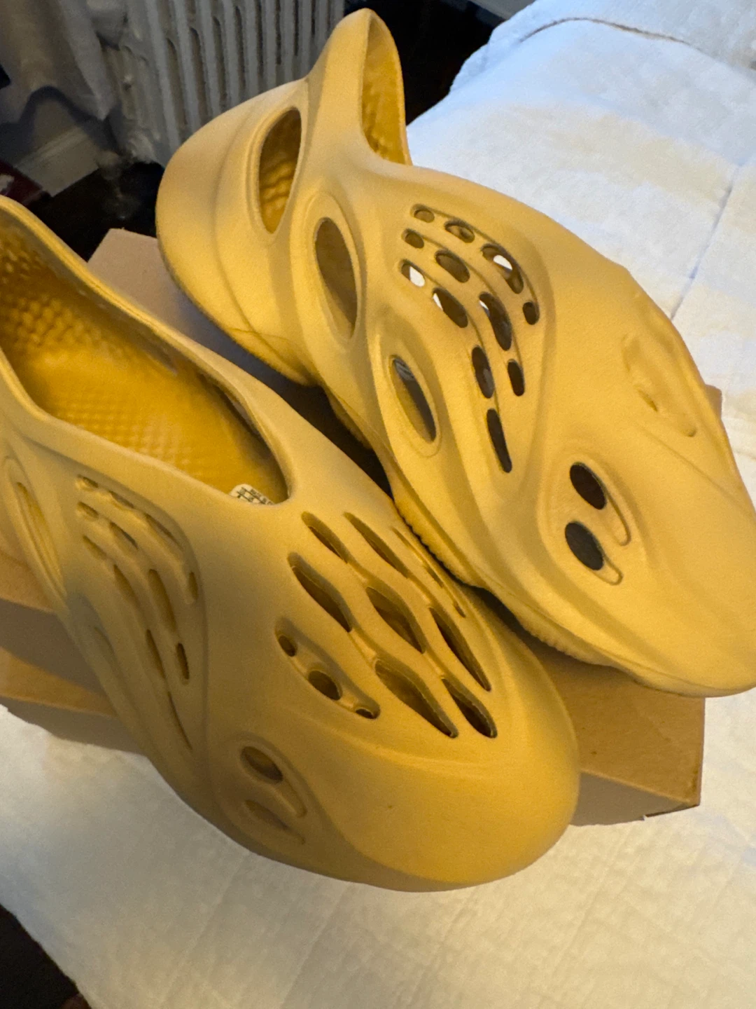 Selling a pair of Adidas YZY Foam RNR in size 8. Worn twice only. These are in great condition and come with the original box. The color is a unique shade that really stands out. Perfect for casual wear or adding a stylish touch to your outfit!