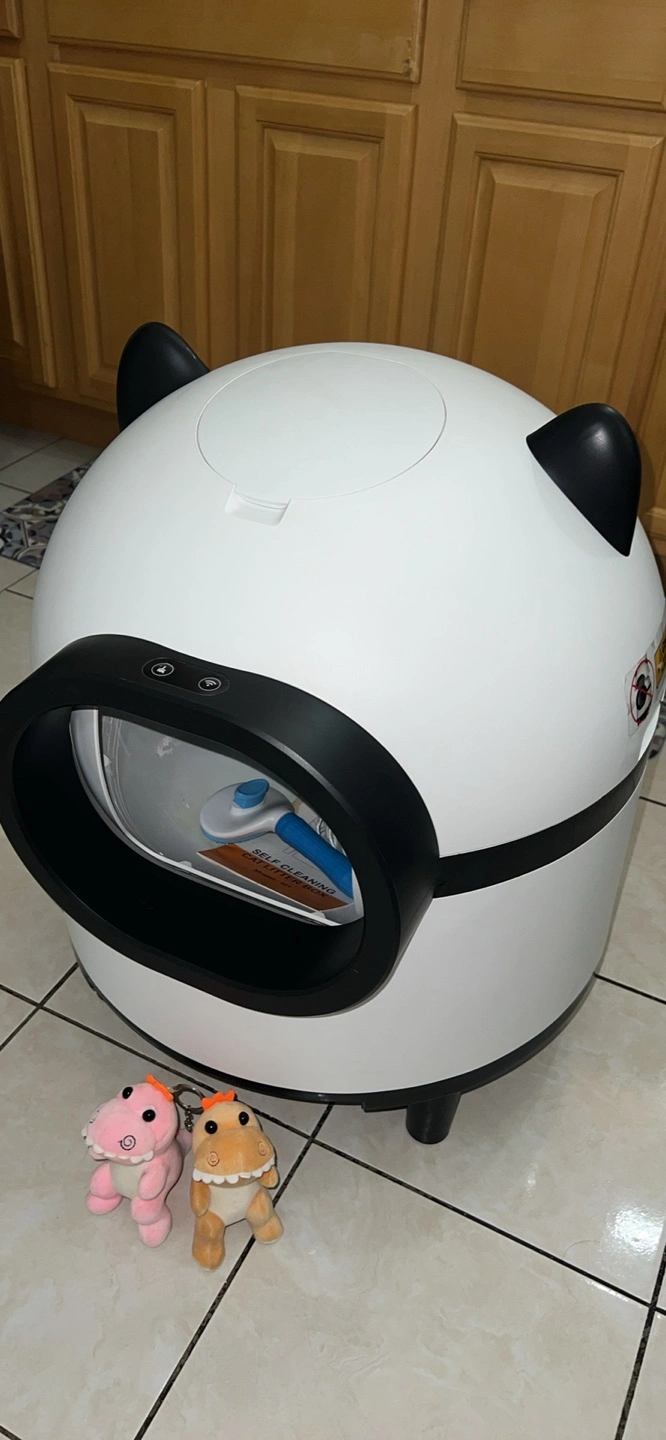Selling a cute panda-style self-cleaning cat litter box! It's in great condition and ready for a new home. The self-cleaning feature makes maintenance a breeze. Perfect for keeping your kitty's space tidy and looking adorable at the same time