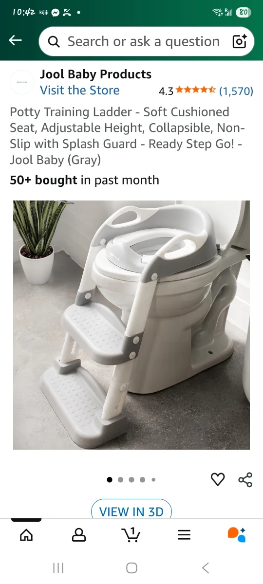 This Jool Baby potty training ladder is a great aid for your little one's transition to using the toilet. It features a soft cushioned seat, adjustable height, and a non-slip design with a guard. The steps have a slip-resistant texture, and the ladder has handles for extra support. It's designed to be collapsible for easy storage when not in use!
