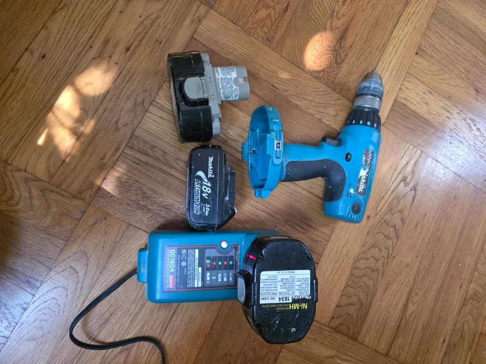 Selling a Makita cordless drill with its charger and batteries Includes: - Makita cordless drill - DC1804 Charger - Batteries