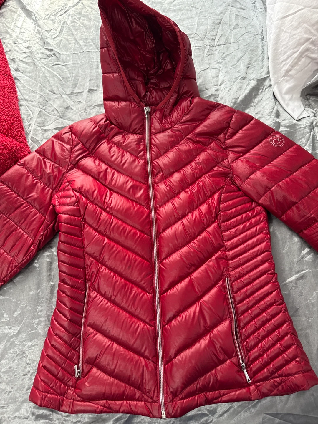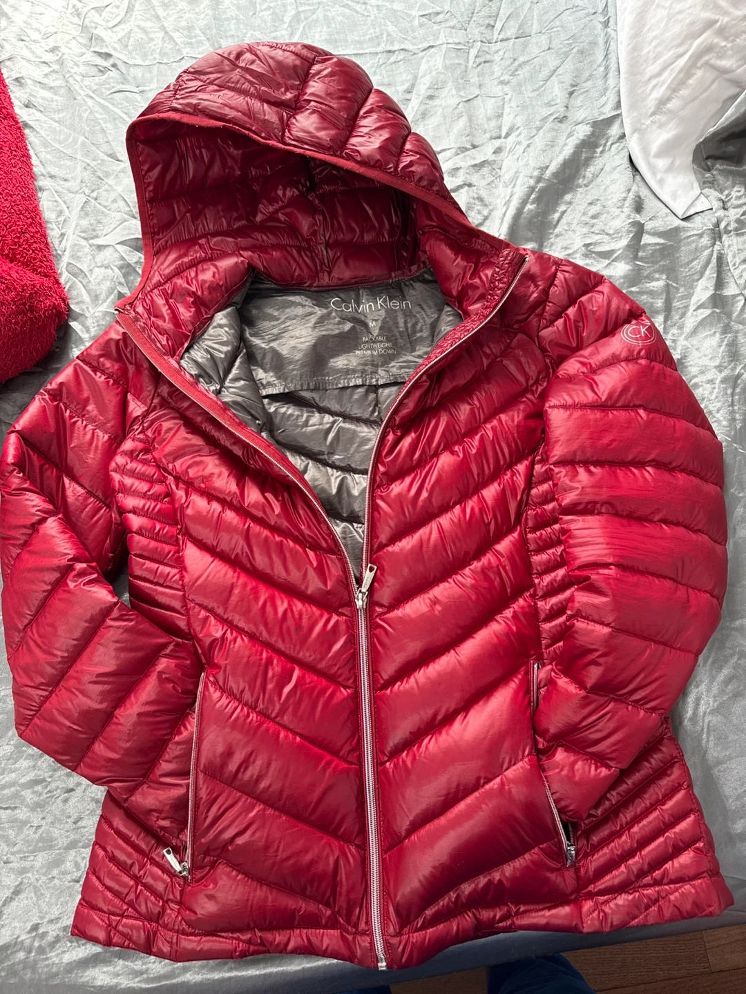 Selling a Calvin Klein packable lightweight premium down jacket in size M. It's a stylish and comfortable jacket perfect for cooler weather! The jacket is in great condition and ready for a new home