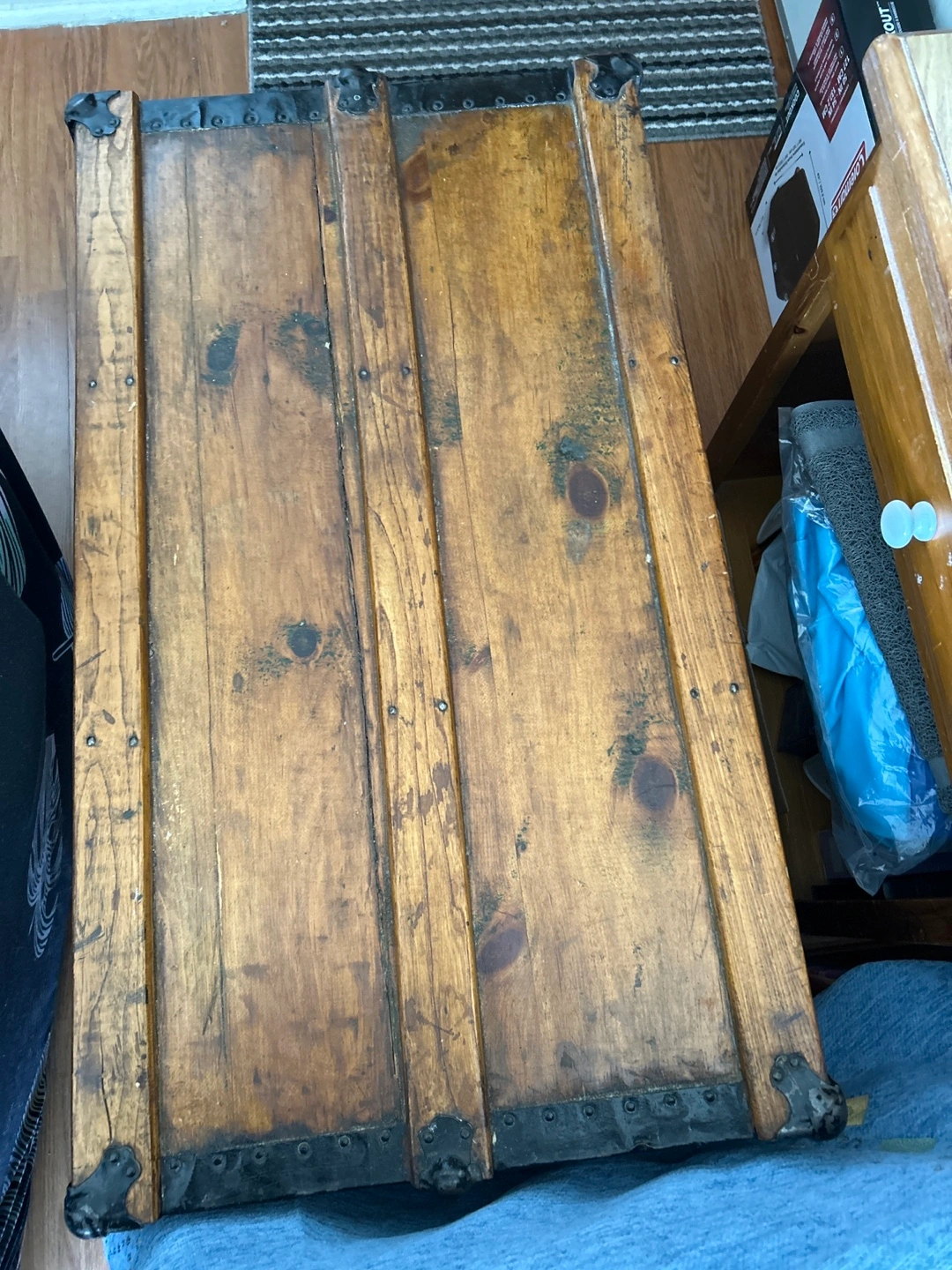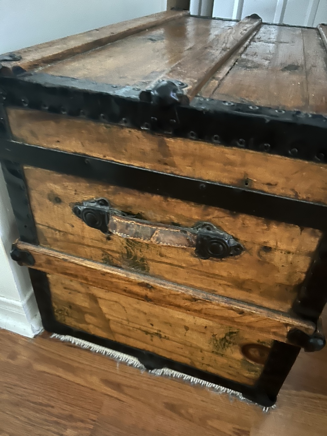 Beautiful antique steamer trunk over 100 years old partly refurbished inside and make a beautiful coffee table or storage unit or an end table or whatever you want.