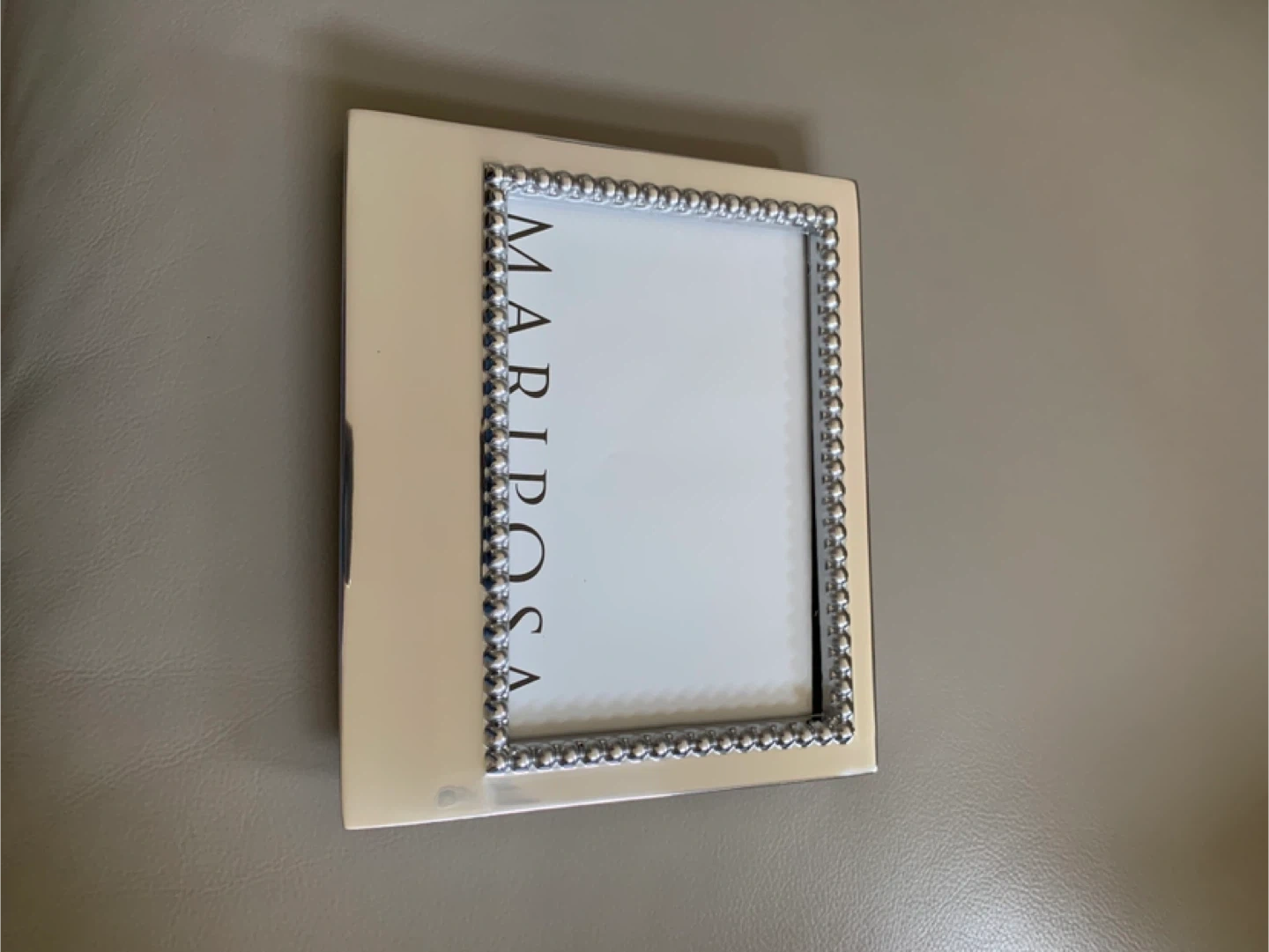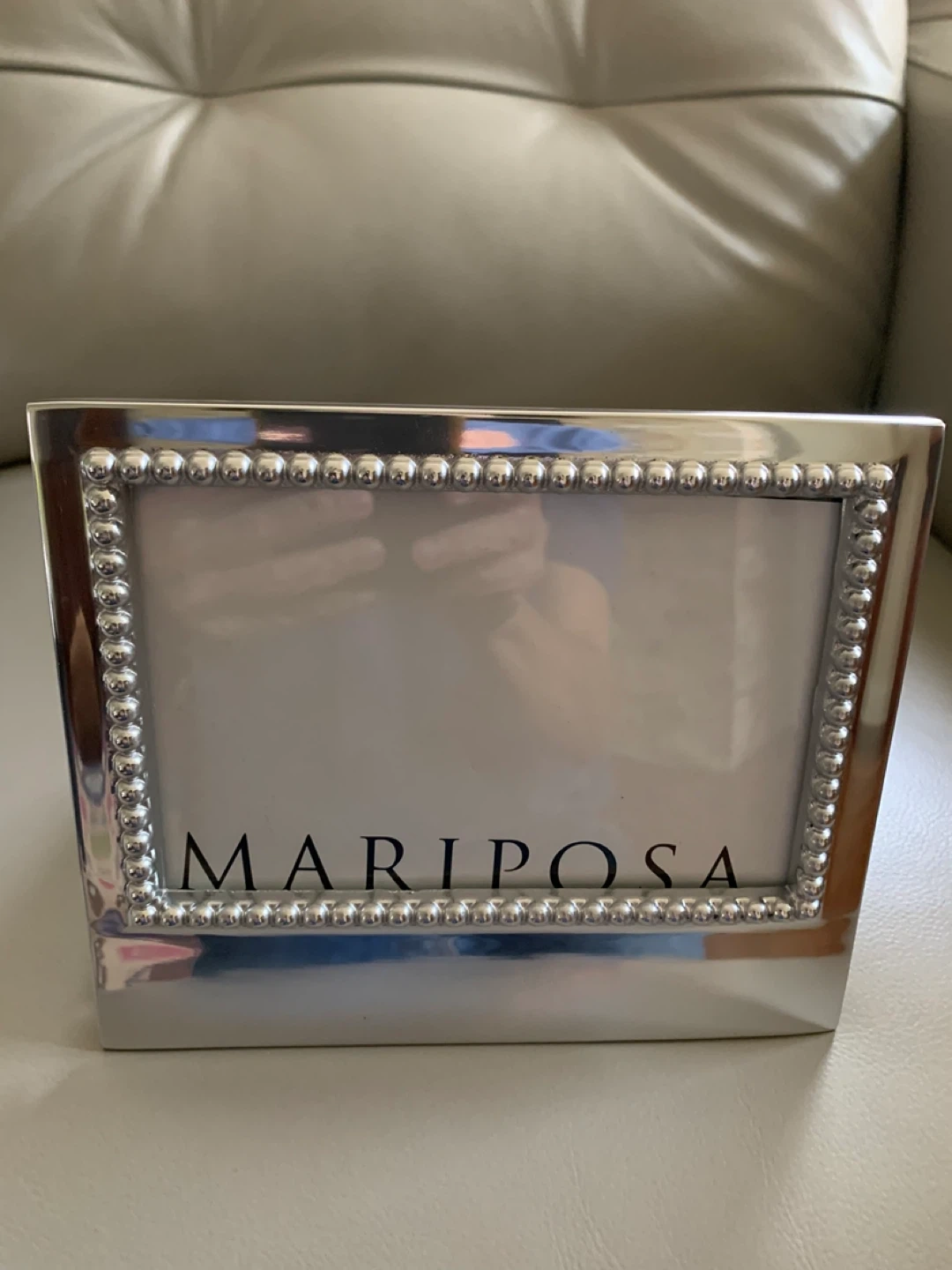 “ Mariposa - Elegant Beaded, Engrave able Statement Picture Frame. 4” W X 6” L for Wedding, Individual Memories Portrait Picture Frame. Over all Dimensions : 6 1/2” X 5 1/2”, Silver in Color. !