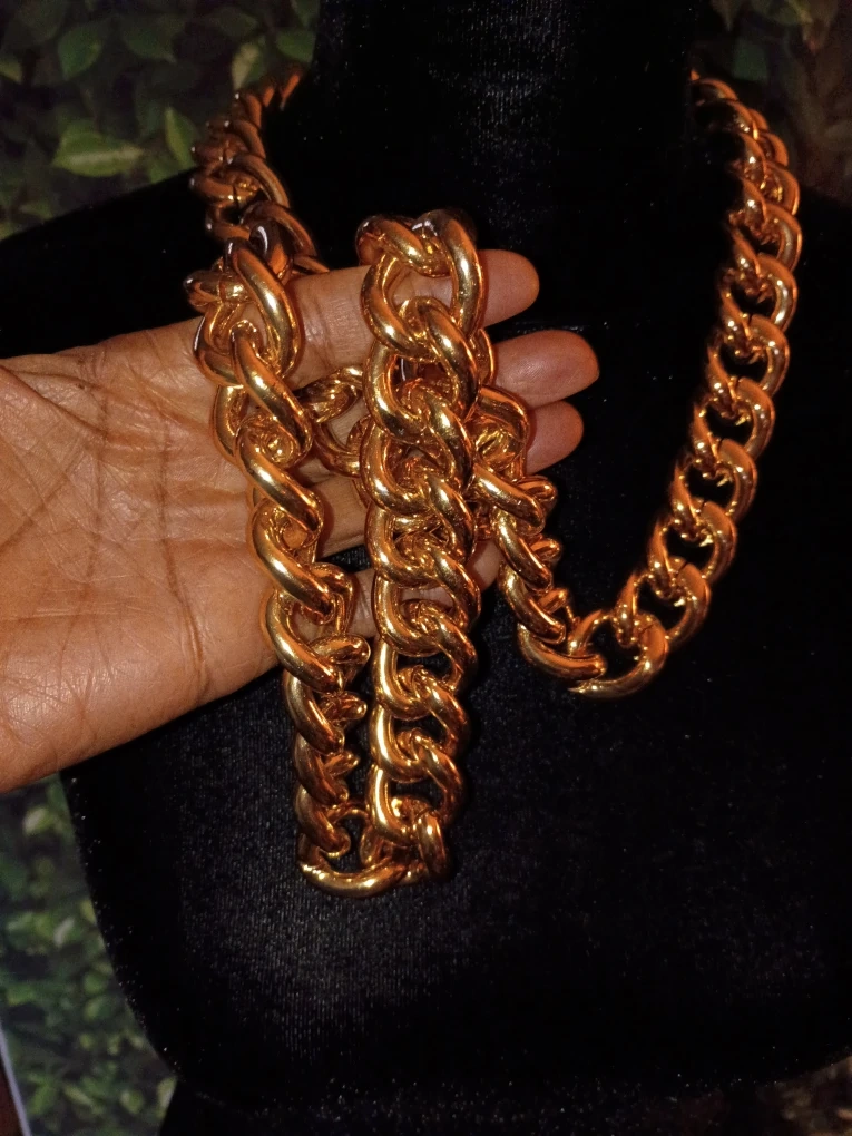 For the BOLD & BEAUTIFUL! Selling this GORGEOUS Chunky Thick Deeply Rich gold chain necklace. It's a statement piece that adds a bold touch to any outfit. The chain is a beautiful gold color and is in great condition!