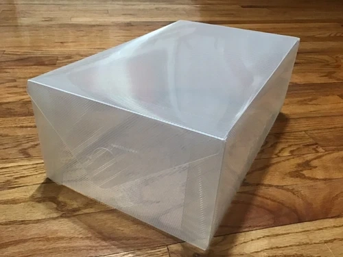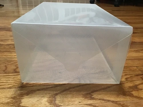 Clear Foldable boxes with air holes on sides to provide ventilation. Can be used for shoes or home organizers. Openings on front and back of box. Stackable.
