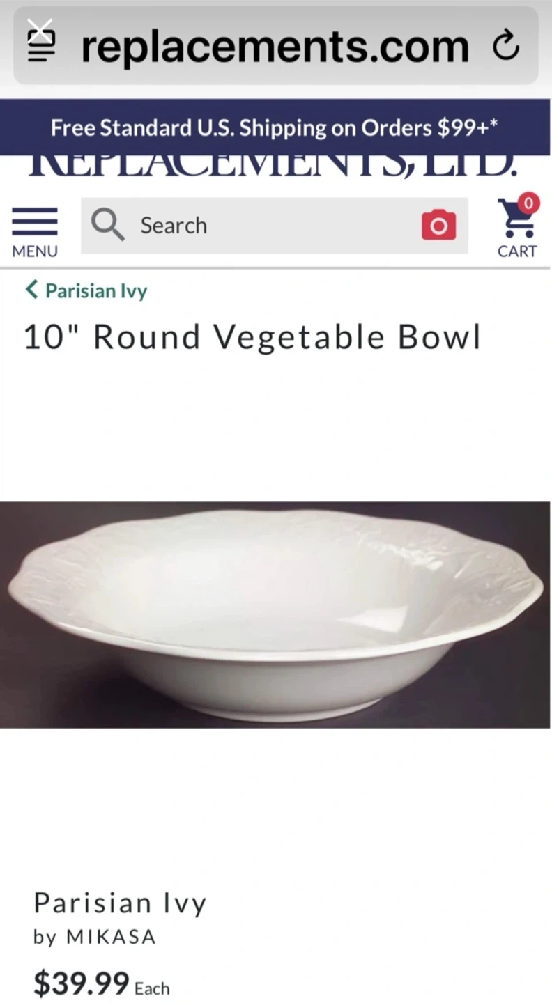 BONE CHINA. On Replacements.com website, a single 10-inch bowl sells for $40 United States dollars plus tax and shipping. See photo .