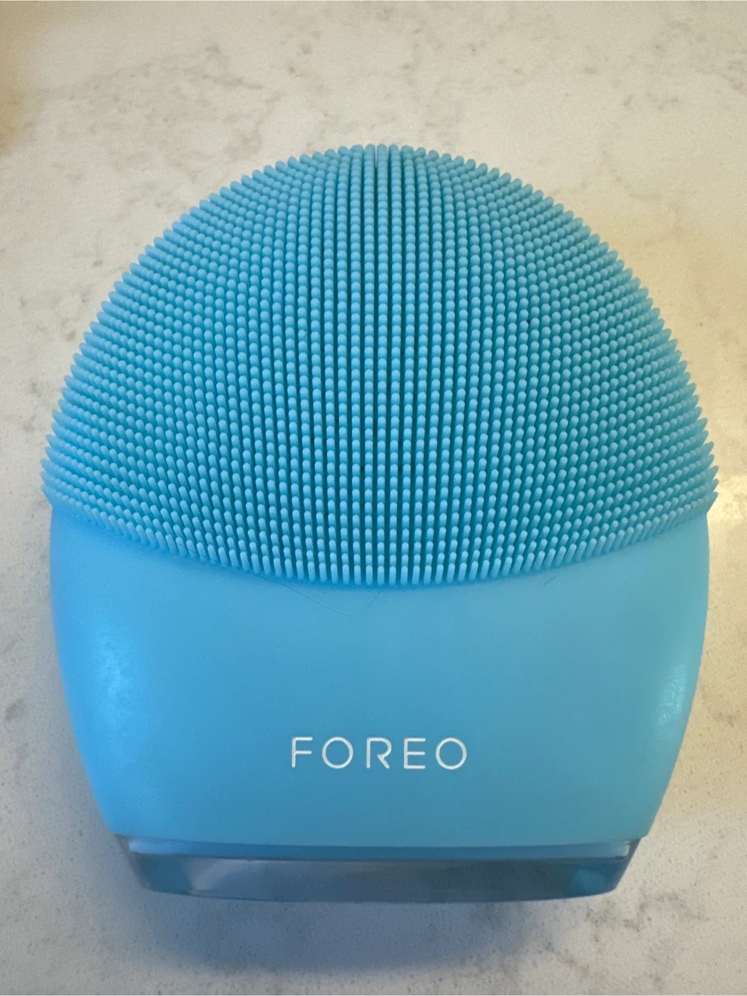 FOREO Luna 3 smart facial cleansing brush for combination skin. It cleans away dirt and oil and leaves your face looking healthier for days. Unlock additional firming massage routines and customized settings by syncing the LUNA 3 with the FOREO For You app. It’s waterproof for both bath and shower use. It comes with its charger and a pouch for storage.