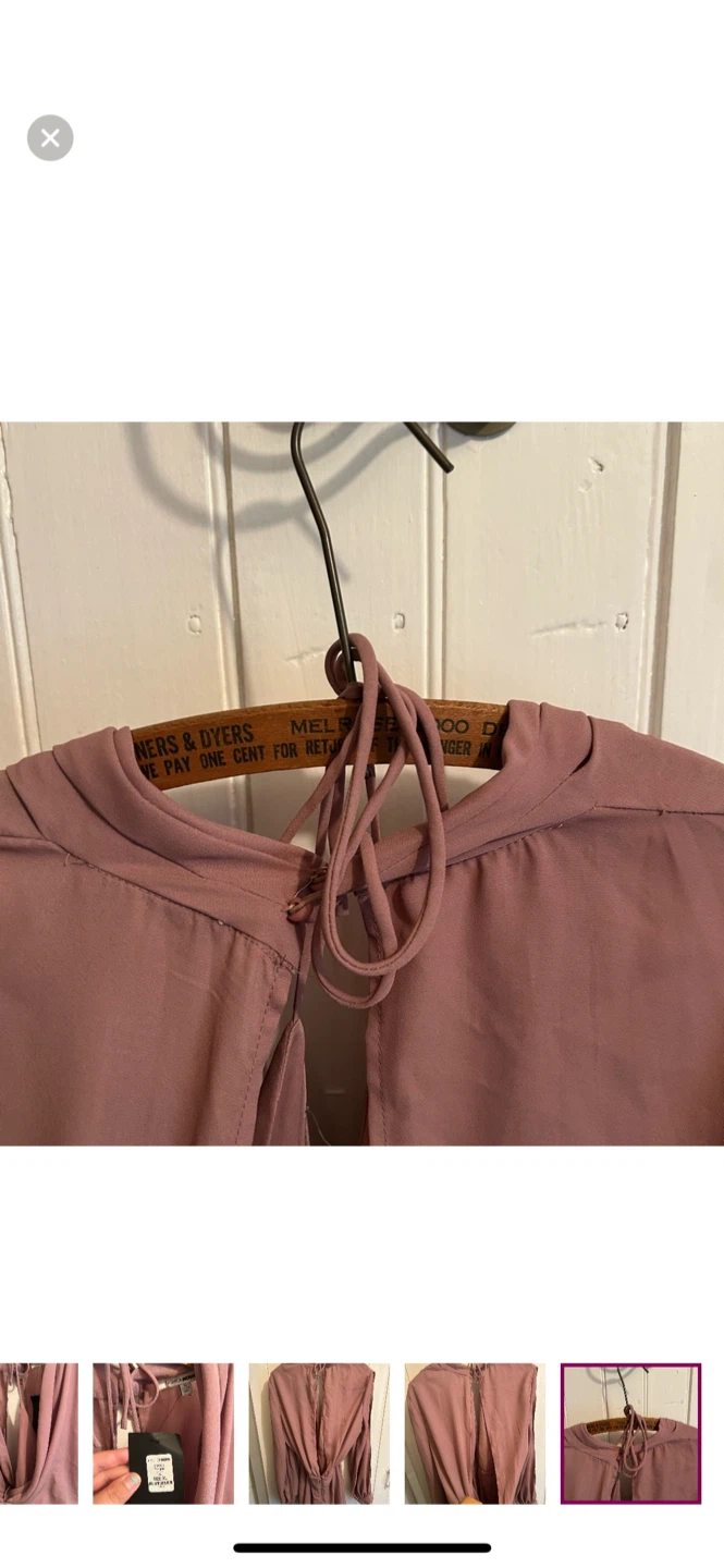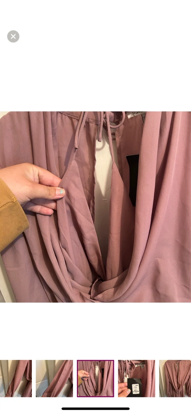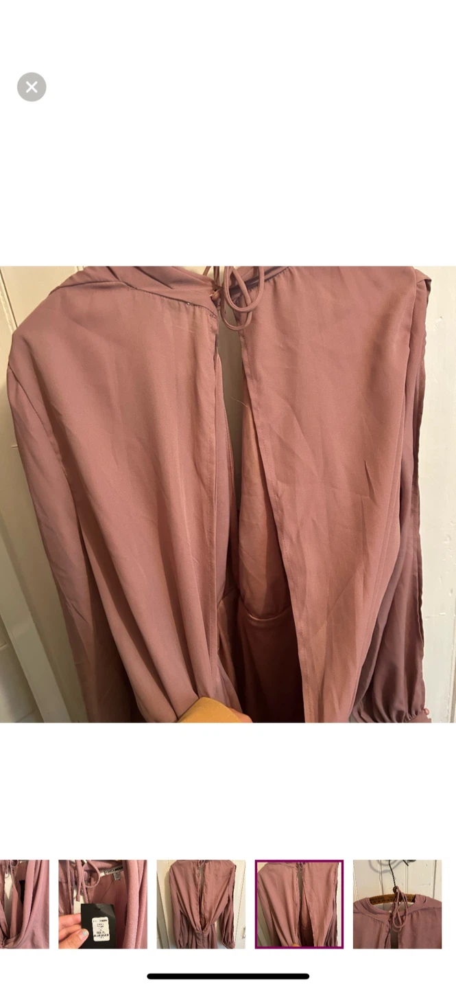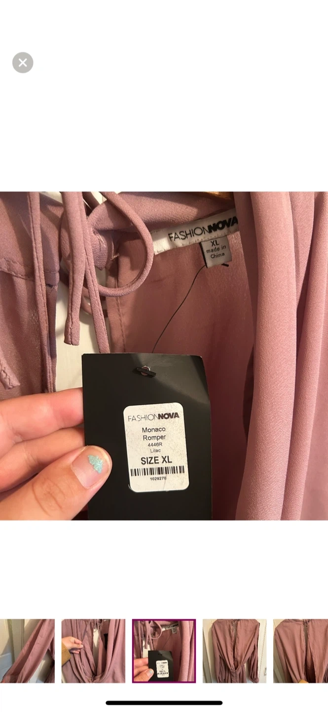 Fashion nova brand. Long sleeve shorts romper. Cuffed with slit from shoulder to cuff. Under slip with halter tie. Semi sheer wrap style vneck top with open back. Purple in colour. Size xl. Brand new condition
