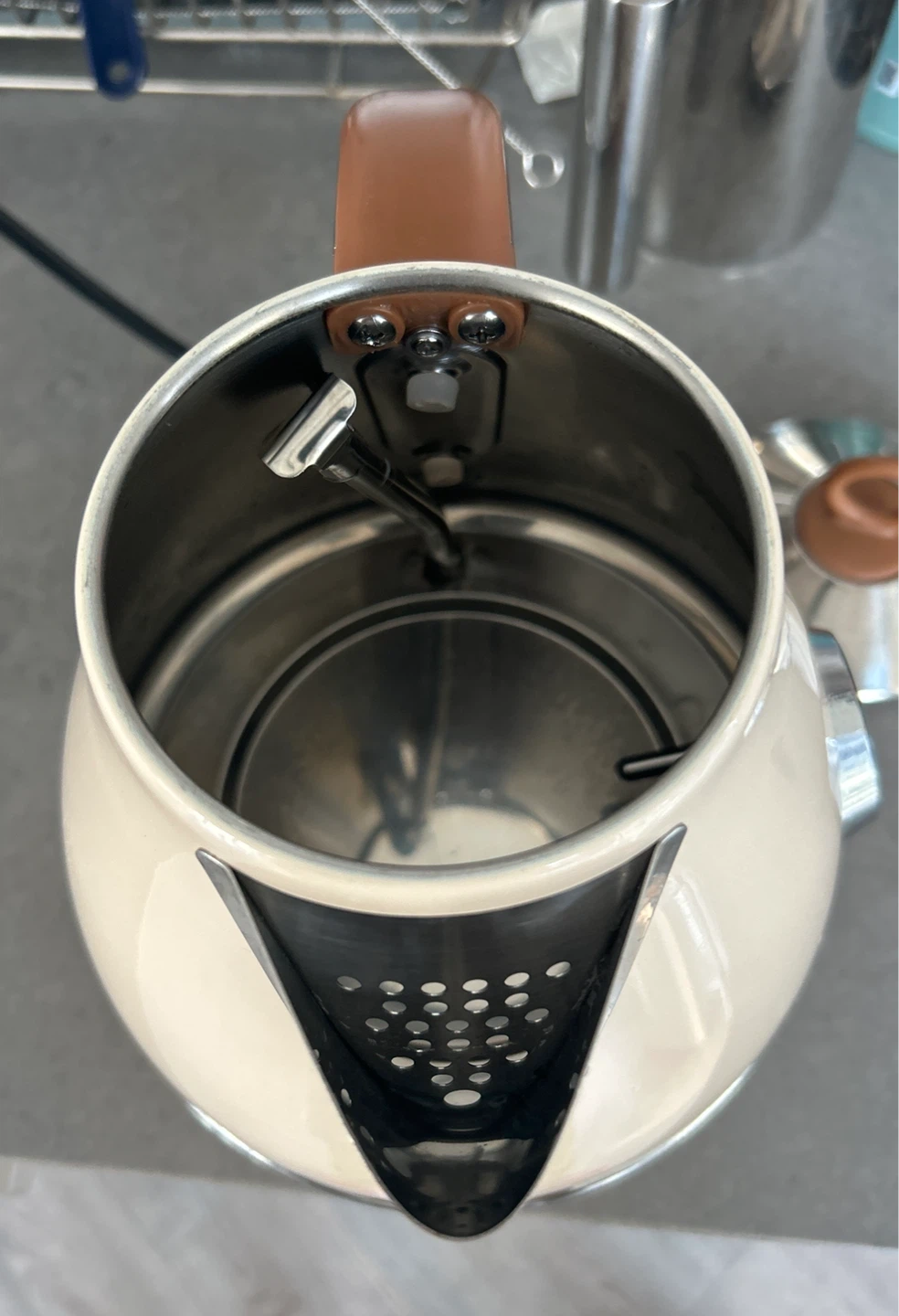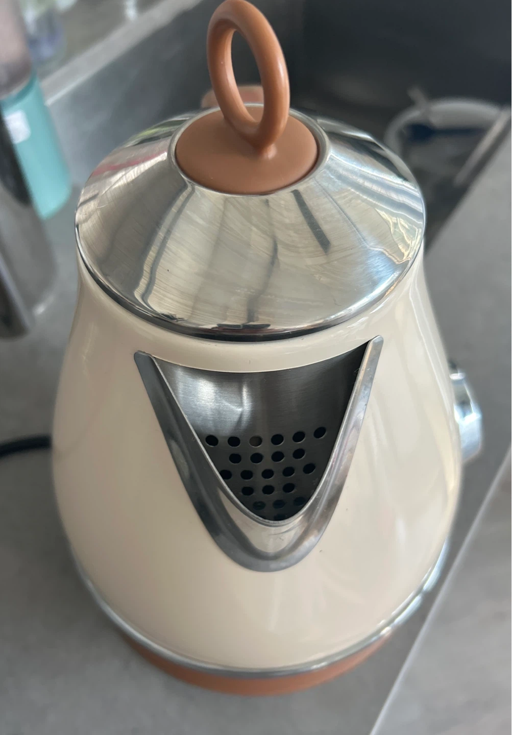 I'm selling a Savania electric kettle in beige and brown. It's in great condition and would look lovely in any kitchen! It has a temperature gauge on the front so you can heat water to the perfect temperature for tea or coffee.