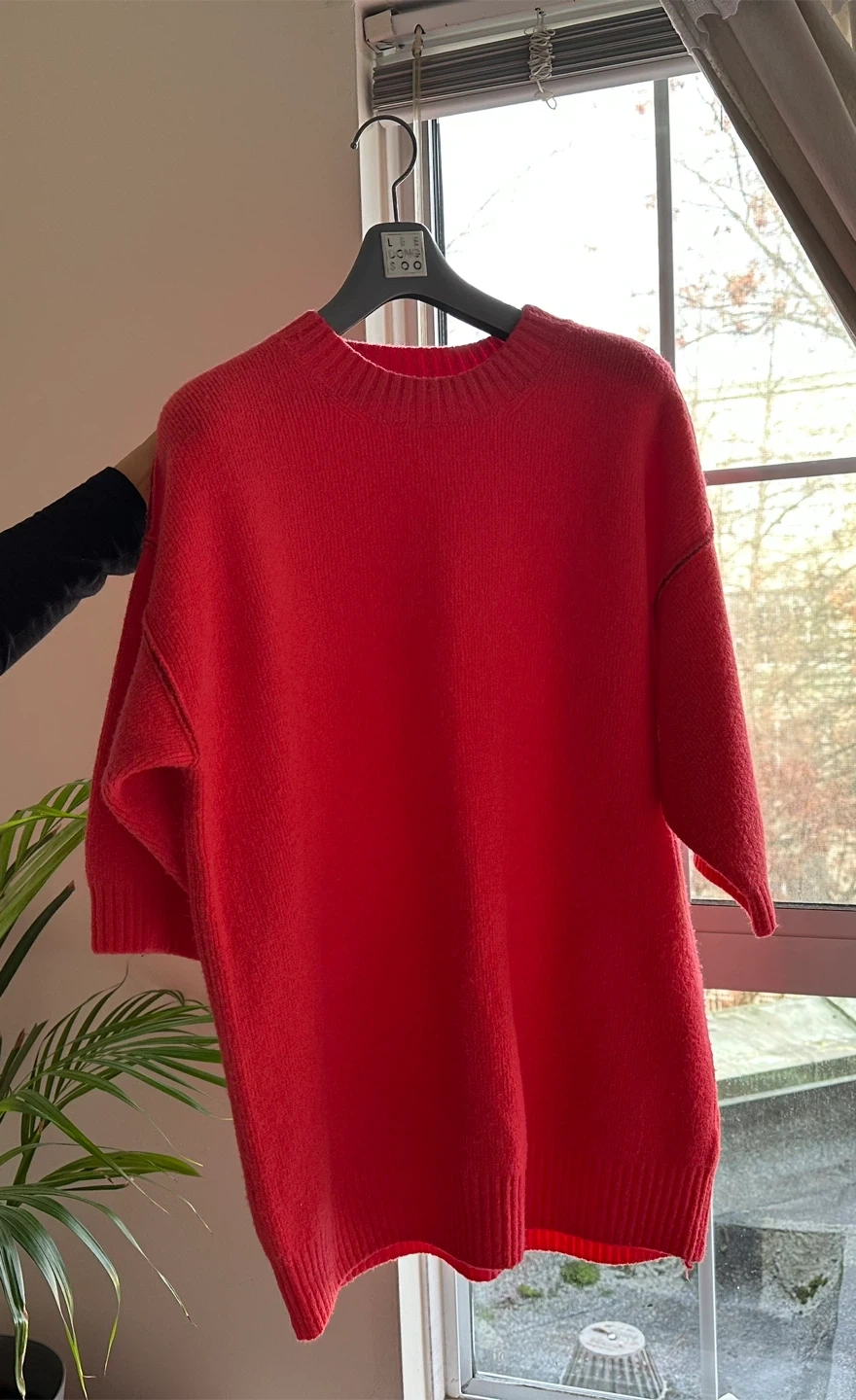 A cozy knit sweater, perfect for chilly days! It's a size small and in great condition. The material feels soft and comfortable, making it a great addition to your wardrobe. It's been well cared for and is ready for a new home!