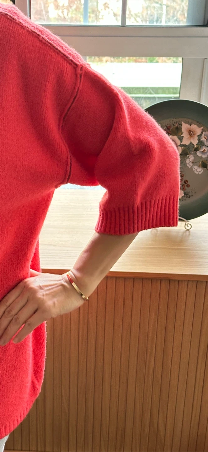 A cozy knit sweater, perfect for chilly days! It's a size small and in great condition. The material feels soft and comfortable, making it a great addition to your wardrobe. It's been well cared for and is ready for a new home!