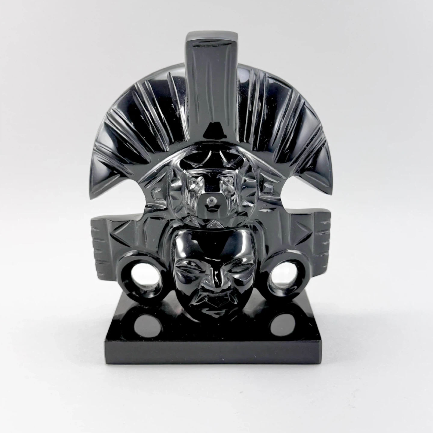 Small polished black obsidian Mayan mask carving measuring 4” long x 2” wide x 5” tall. No small ship on side as noted— price already reflects this condition, otherwise perfect