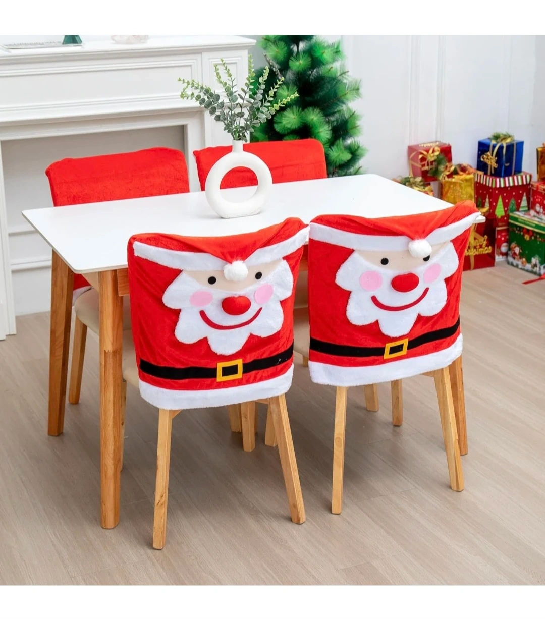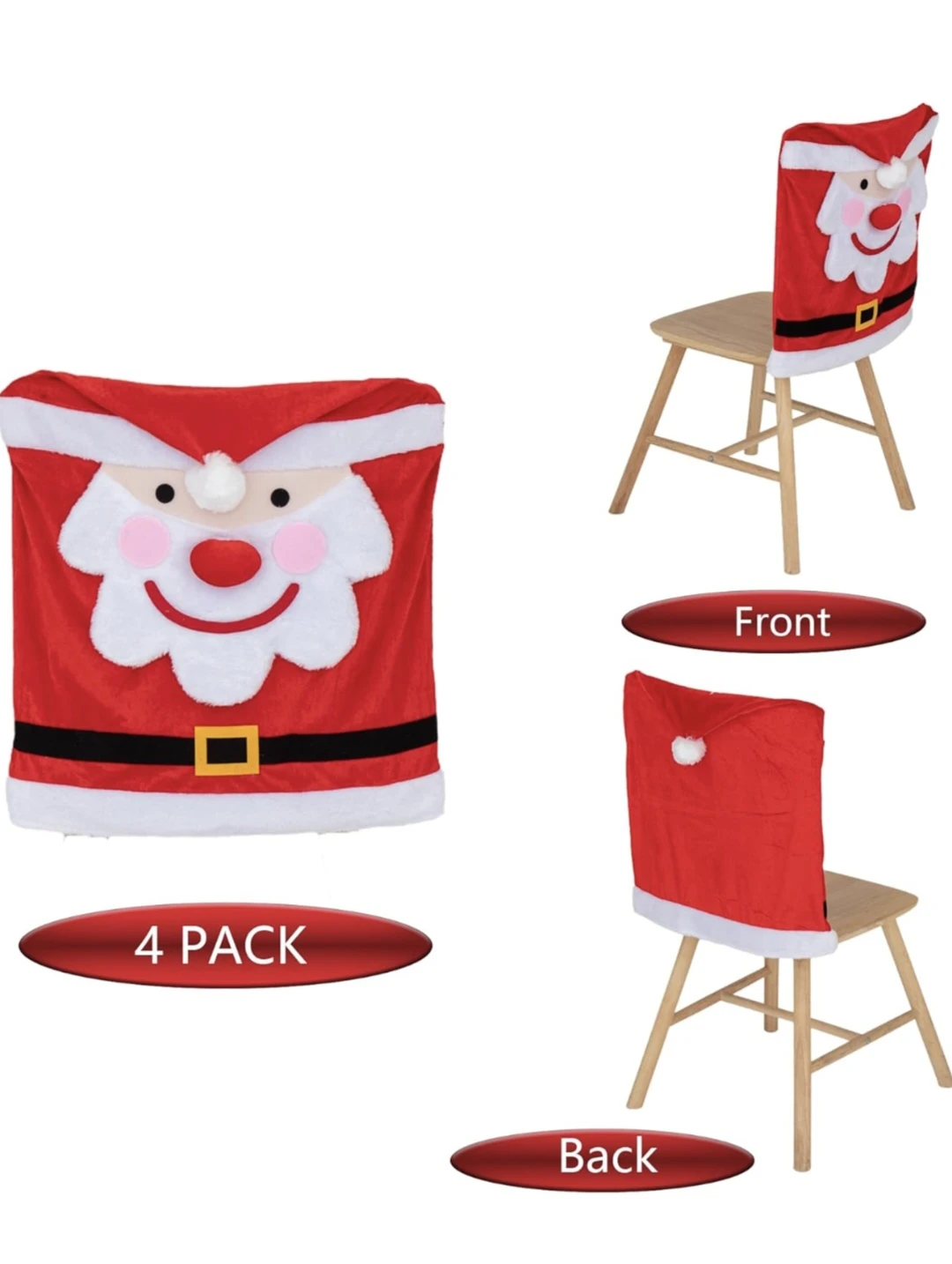 - Add a festive touch to your holiday gatherings with the Jazgrom Christmas Chair Back Covers. This set includes four beautifully designed chair back covers, each featuring a jolly Santa Claus. Perfect for decorating your dining chairs, these covers add a cozy and cheerful vibe to your kitchen or dining area during the holiday season. Crafted from high-quality materials, these covers are durable, easy to slip on, and fit most standard dining chairs. Whether you're hosting a Christmas dinner or a holiday party, these chair back covers are a charming addition to your indoor holiday decor.