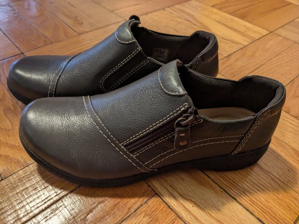 Selling a pair of Clarks Collection shoes in a lovely brown leather! They are a women's size 10W (wide width). Brand new only tried on never worn. They are too big for me and cannot return. Cash only please. Pickup is near Eglinton and Spadina.